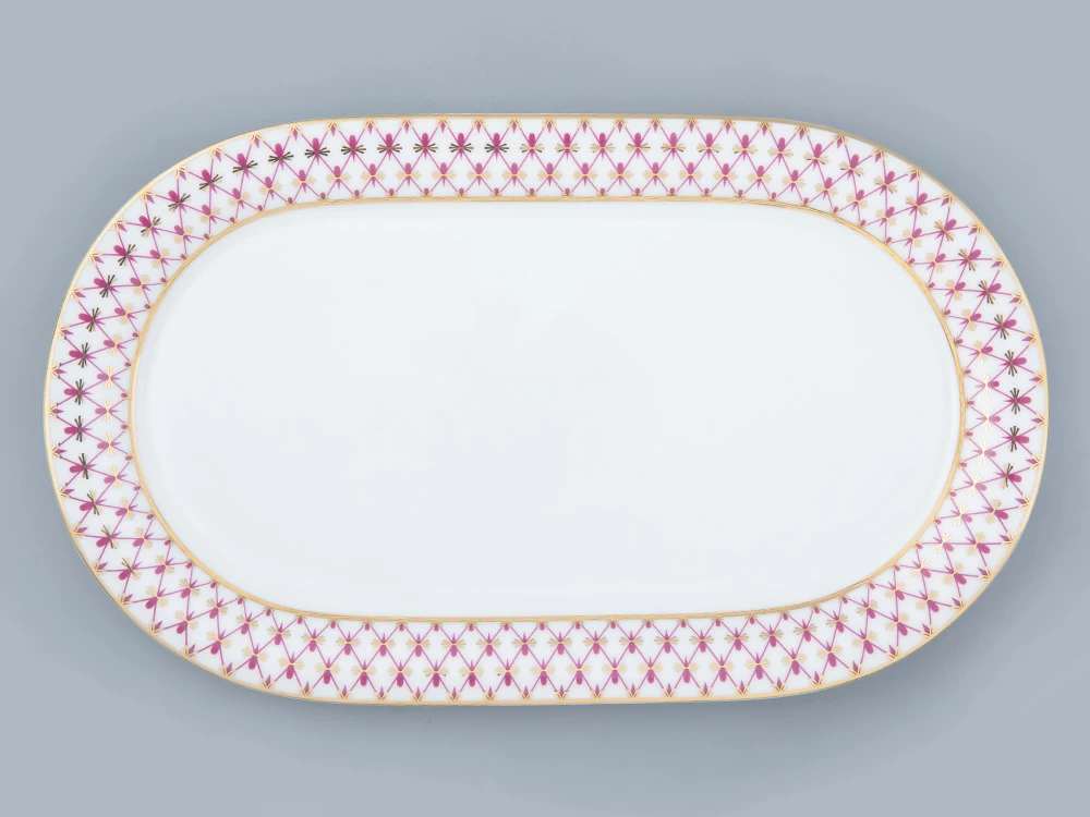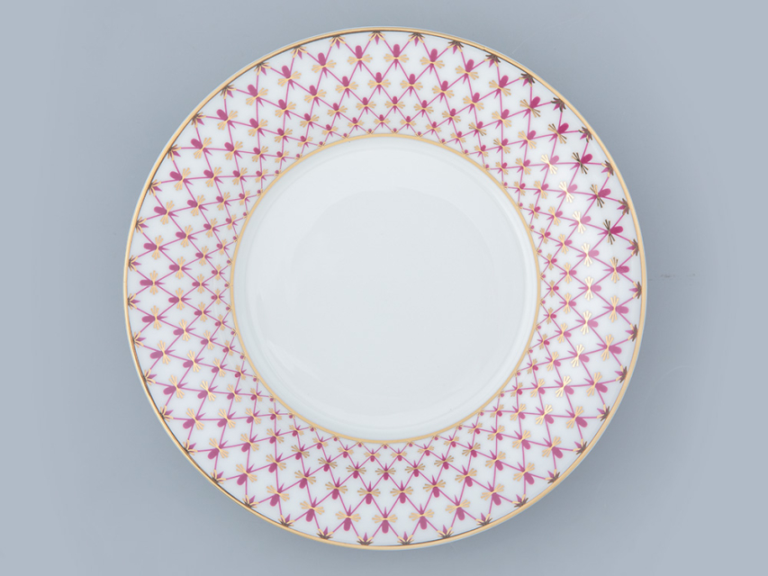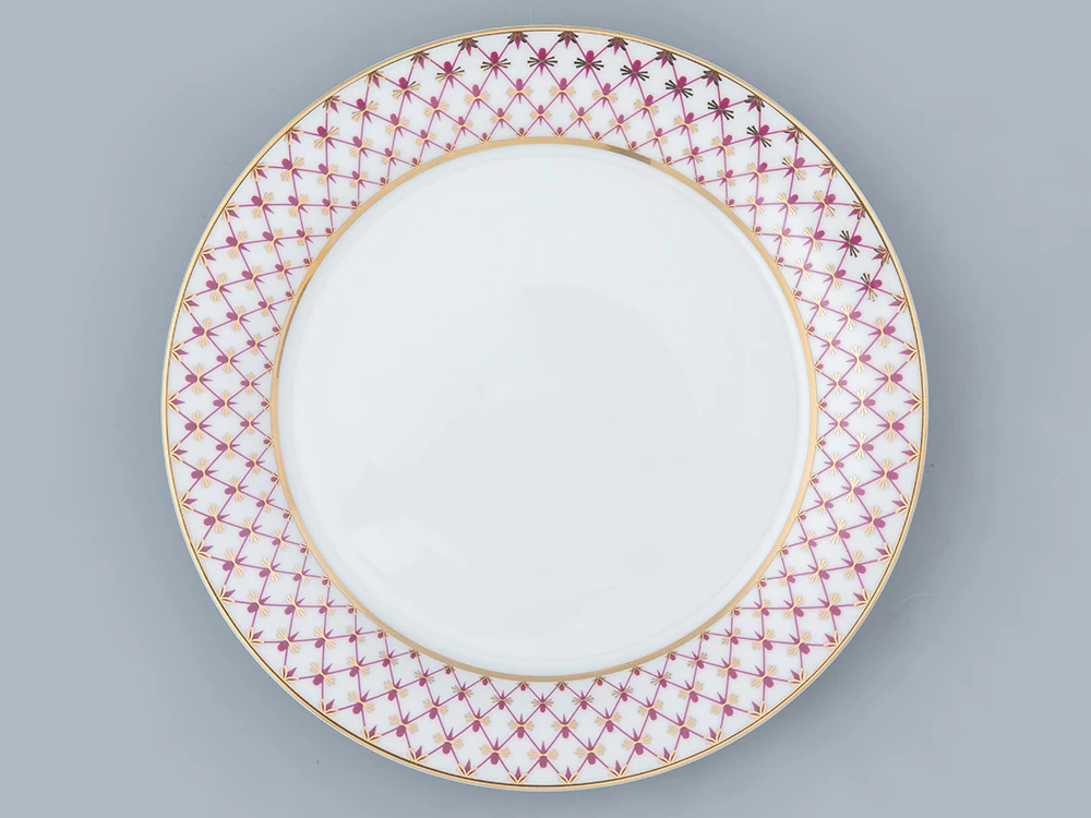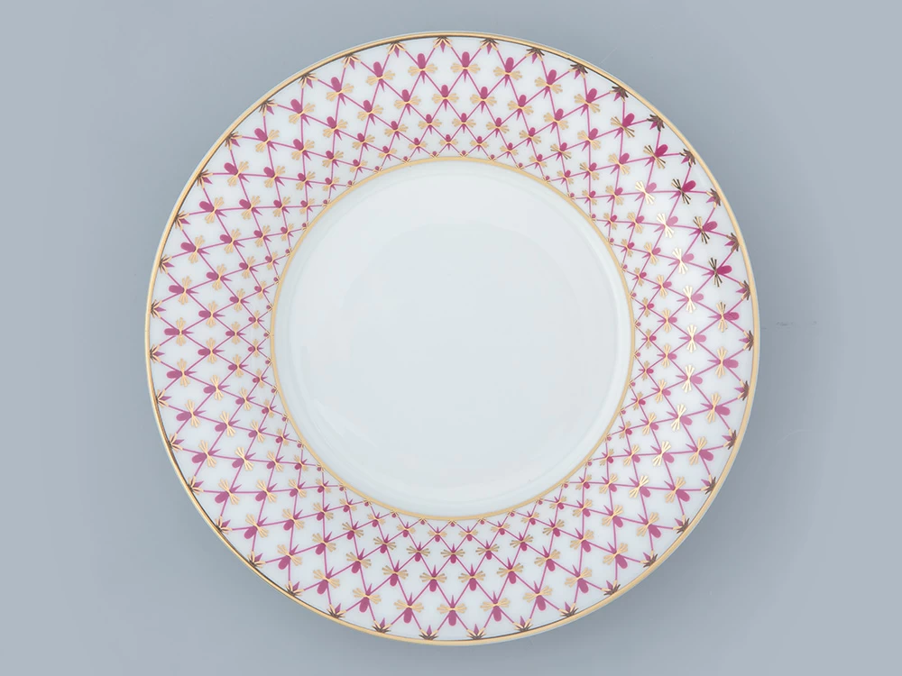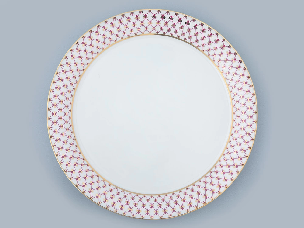 «Сетка-блюз» – это современная интерпретация росписи «Кобальтовая сетка», которую создала Анна Яцкевич. Рисунок переосмыслила художник Галина Шуляк в 2003 году. Пурпурный цвет отсылает к прообразу легендарного мотива – «Собственному» сервизу Императрицы Елизаветы Петровны, выпущенному в 1750-х годах, а сегодня хранящегося в коллекции Государственного Эрмитажа.