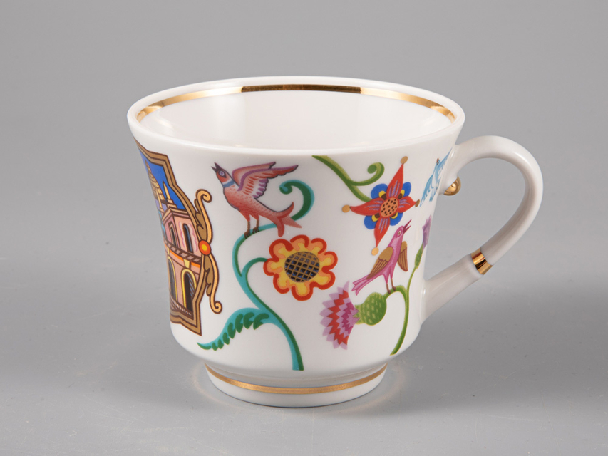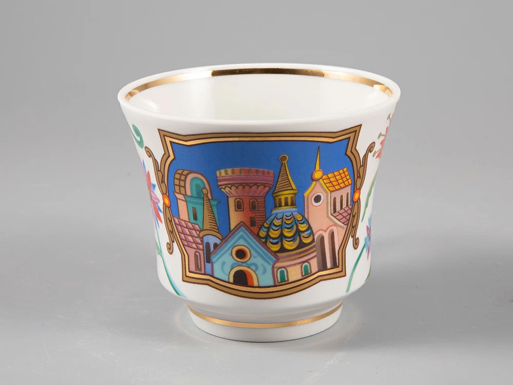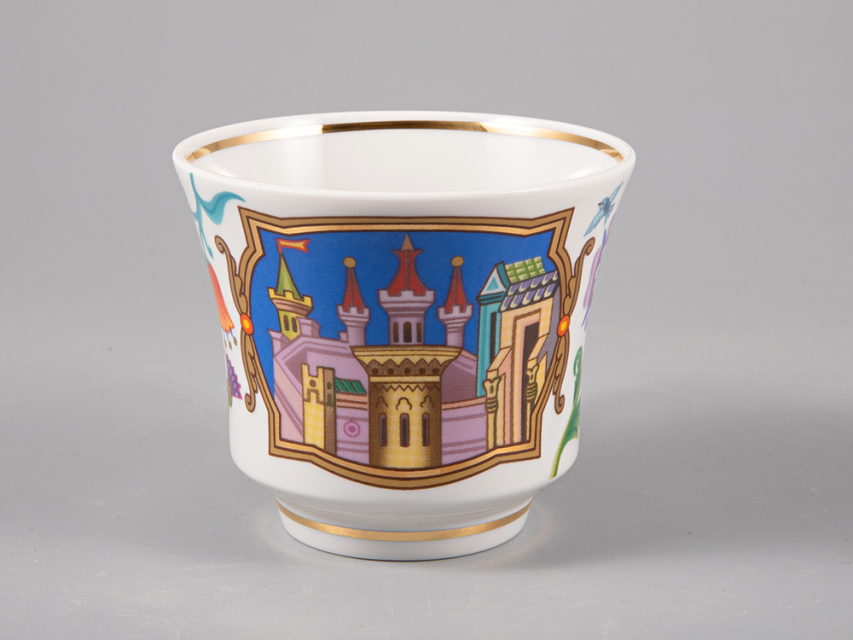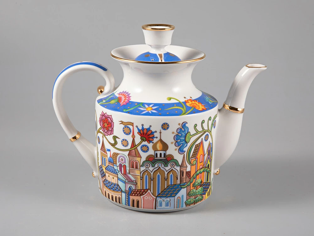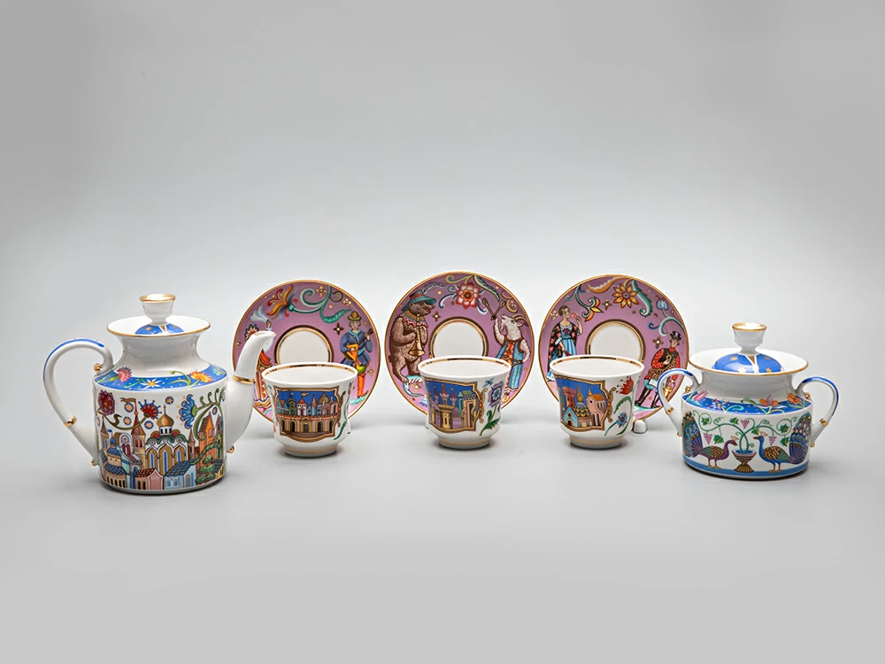 Вдохновением для создания красочной коллекции «Чудоград» стало русское искусство допетровского времени, в частности, Нарышкинское (Московское) барокко с характерным для него узорочьем. Стилевое решение декора отсылает к традиции русского лубка и книжных миниатюр. На предметах сервиза «выросли» нарядные дома в окружении диковинных птиц и эффектных золотых акцентов.