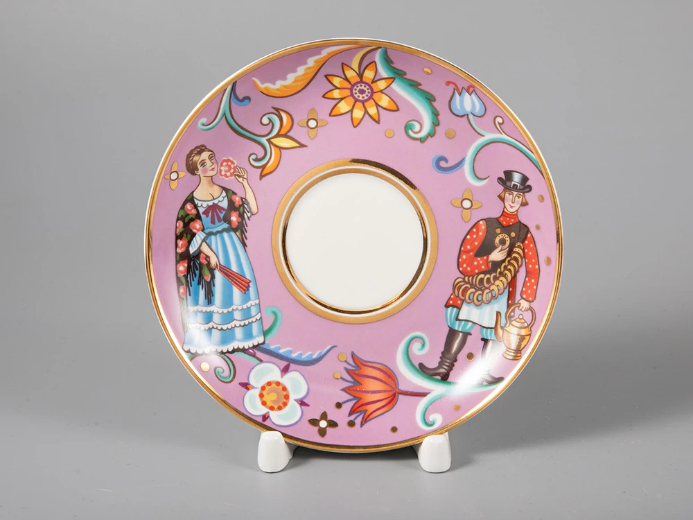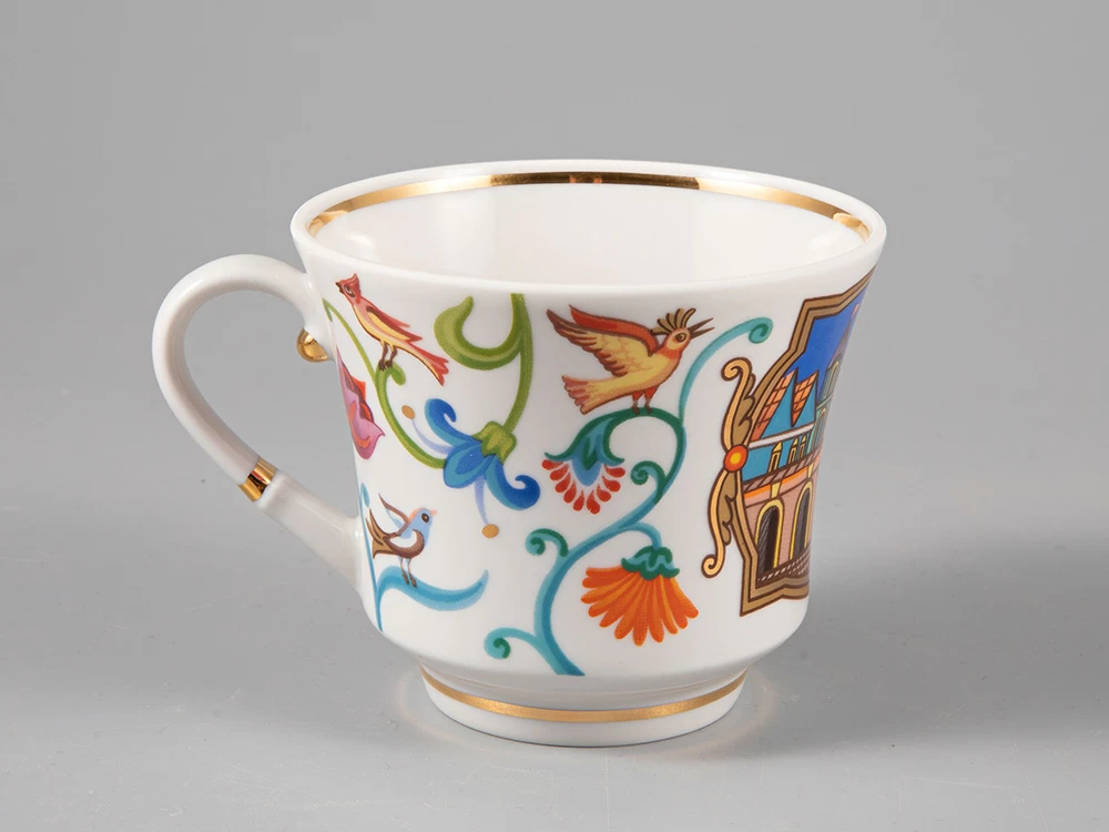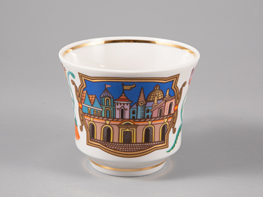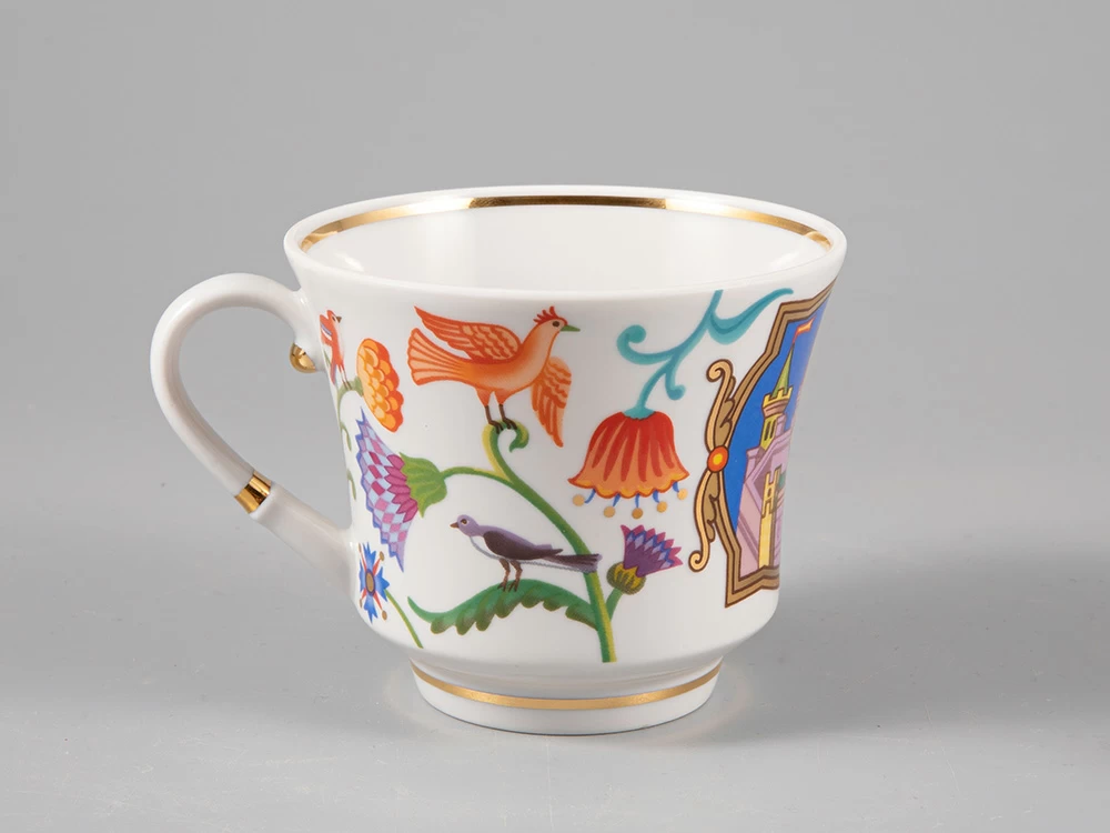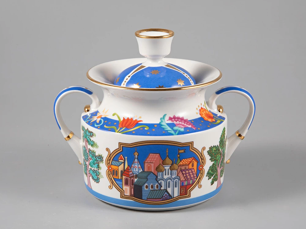 Вдохновением для создания красочной коллекции «Чудоград» стало русское искусство допетровского времени, в частности, Нарышкинское (Московское) барокко с характерным для него узорочьем. Стилевое решение декора отсылает к традиции русского лубка и книжных миниатюр. На предметах сервиза «выросли» нарядные дома в окружении диковинных птиц и эффектных золотых акцентов.