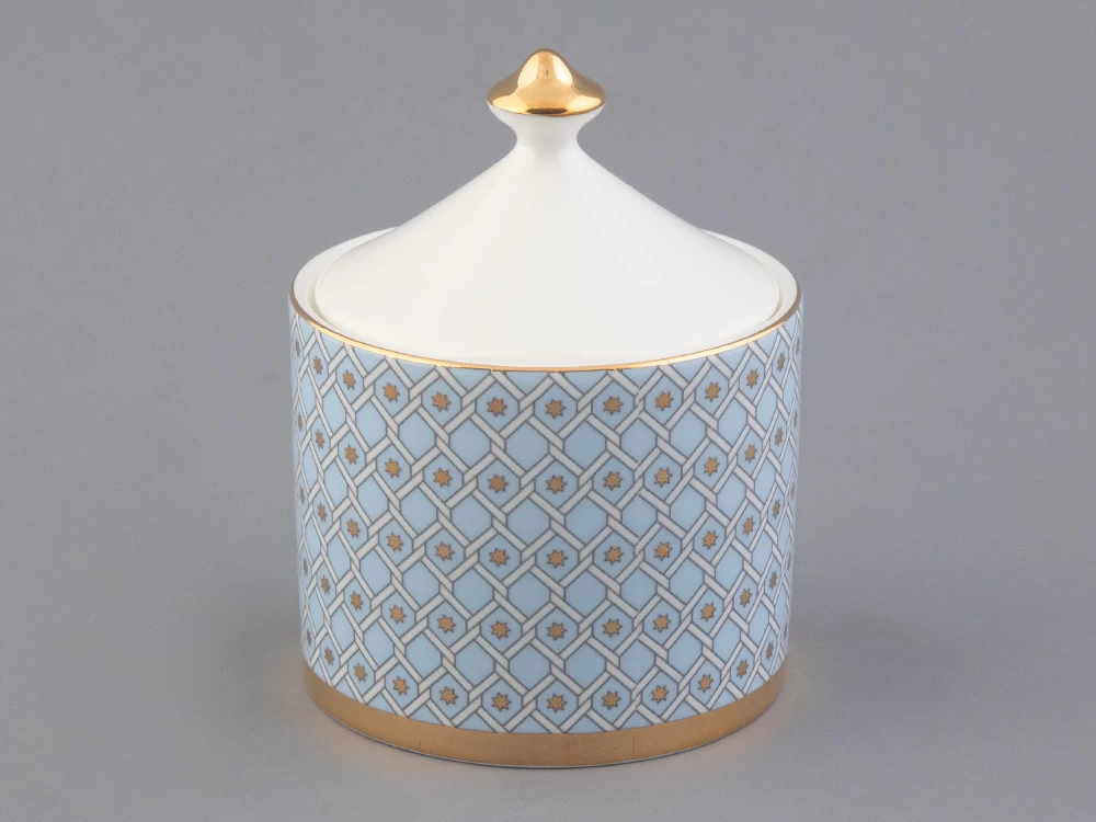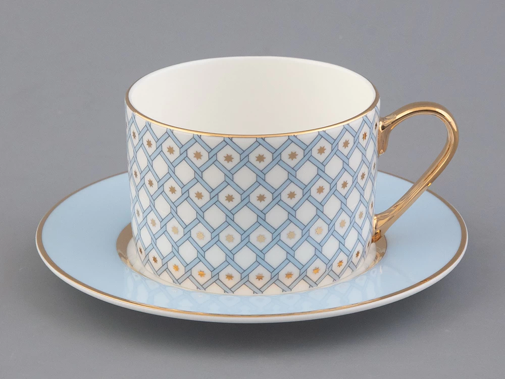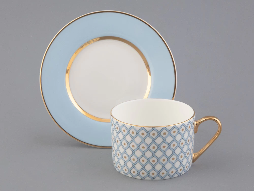 Сервиз чайный «Азур» отличается изысканным декором, представляющим собой современную вариацию на тему знаменитой росписи Императорского фарфорового завода «Кобальтовая сетка», прототипом которой, в свою очередь, является Собственный сервиз Елизаветы Петровны середины XVIII века. Как и исторические прототипы, роспись, исполненная в XXI веке, строится по образцу популярной в середине XVIII века «трельяжной решетки», отвечающей вкусам эпохи рококо. Строгий геометрический декор, задающий основной ритм, художник Юлия Чистякова смягчает мягкими заливками цвета и золотыми акцентами в виде разновеликих изображений рождественской звезды.