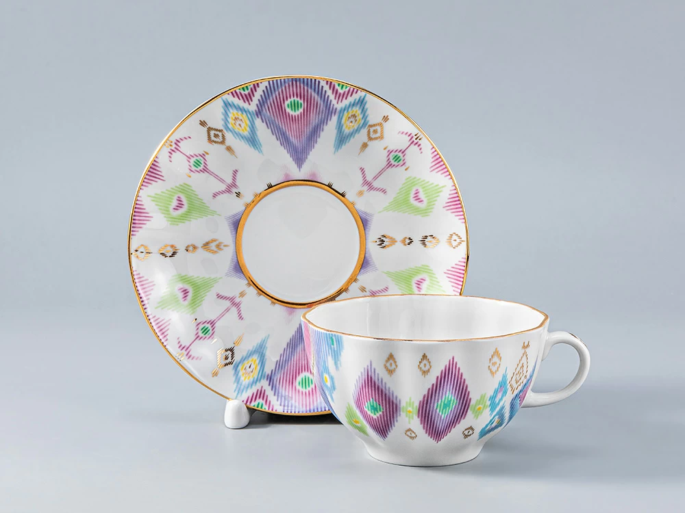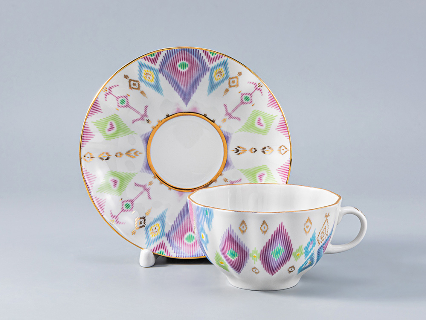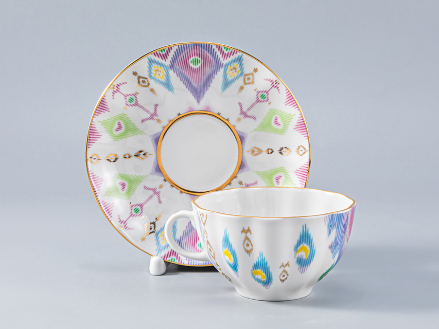Неизгладимое впечатление производит самобытная восточная красота коллекции, заключающаяся в насыщенных цветах, плавных переходах оттенков, асимметрии рисунков, таких же экзотичных, как оперение диковинной птицы.