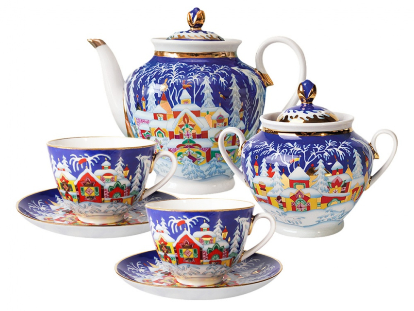 Сервиз чайный форма Весенняя рисунок Зимняя сказка 6 персон, 14 предметов арт. 81.15505.01.1