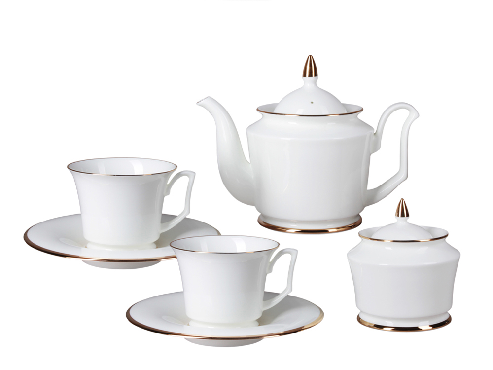 Изделие с рисунком "Золотая лента" изготовлено на Императорском фарфоровом заводе из костяного фарфора. Изысканная отводка, нанесенная натуральным золотом, деликатно обыгрывает белоснежную поверхность изделий, дополняет легкий, светлый образ, подчеркивает хрупкость материала, изящную форму предметов.
