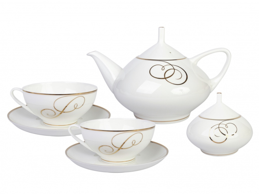 Сервиз чайный Купольная Золотые завитки, 6 персон 14 предметов, арт. 81.21491.00.1