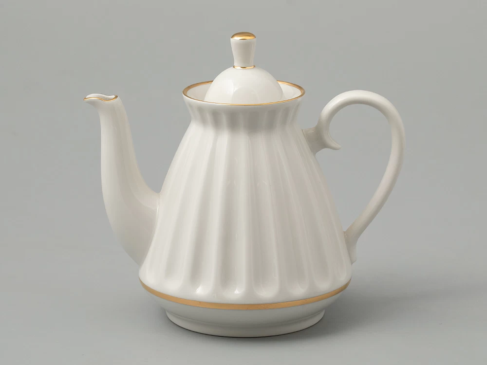 Лаконичный декор сервиза «Белоснежка» выполнен вручную золотосодержащими красками и позволяет оценить декоративные качества материала и достоинства формы. Форма «Лучистая» разрабатывалась художником Ниной Славиной в 1970-1990-х гг. Несмотря на почтенный возраст, «Лучистая» по-прежнему актуальна, как в своем первозданном белоснежном виде, так и с росписями современных художников.