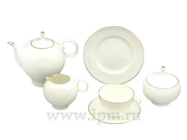 Сервиз чайный рис. Золотой кант изготовлен на Императорском фарфоровом заводе из костяного фарфора с отводкой золотом вручную. Автор формы - Линчевская Т.С. Сервиз состоит из 20 предметов на 6 персон.