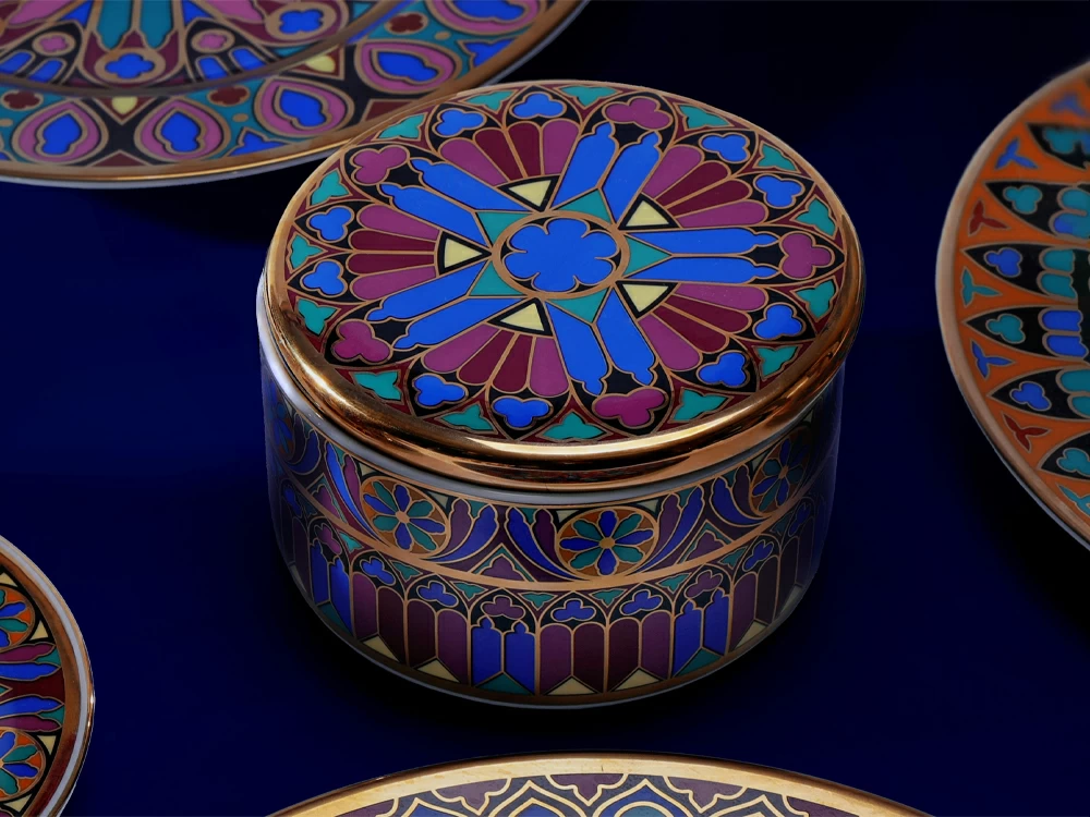 Роскошный орнамент шкатулки – дань уважения богатому наследию Императорского фарфорового завода и продолжение славной истории русского фарфора. В нем с первого взгляда узнаются мотивы знаменитого сервиза "Готический" и серии "Готических" тарелок первой половины XIX века. Круговая композиция, украшающая шкатулку, воссоздает магию витражей и напоминает стрельчатые окна готических соборов. Рисунок на крышке продолжает тему, повторяя мотив витражной «розы», характерного элемента готических храмов. Цветовая палитра рисунка включает насыщенные оттенки красного, синего, зеленого и черного цветов, традиционно ассоциирующихся с готикой. Сочетание с белоснежным костяным фарфором и золотыми вставками создает контраст и ощущение игры света сквозь витражи древних храмов. Изысканная шкатулка станет надежным хранителем ваших ценностей, защищая их от пыли и повреждений. Поставляется в подарочной упаковке, что делает ее прекрасным подарком для ценителей прекрасного. |
