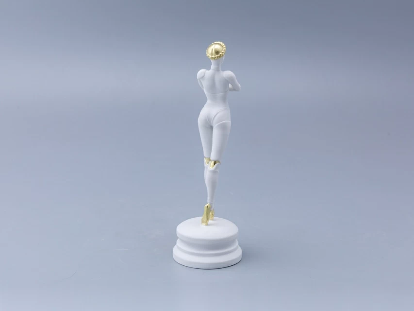 Изделие декорировано золотосодержащим препаратом с содержанием золота 52%, что делает скульптуру еще более ценной. Чтобы золото получило дополнительный блеск, его цируют вручную агатовым карандашом, что отсылает к традициям создания фарфоровых произведений для императоров России разных эпох.