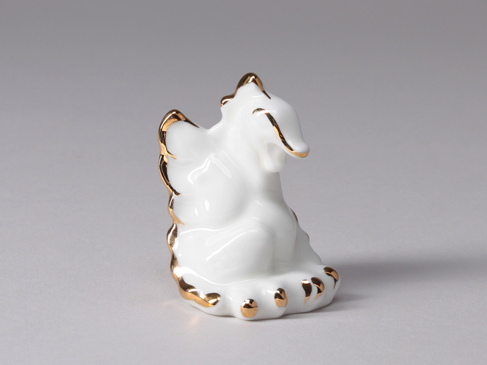 Скульптура вошла в серию миниатюрных фигурок, посвященных символу Нового года. Мелкая пластика, демонстрирующая белизну материала с золотой росписью, несомненно, займет достойное место в новогодней композиции, в современном интерьере и послужит прекрасным подарком к Новому Году