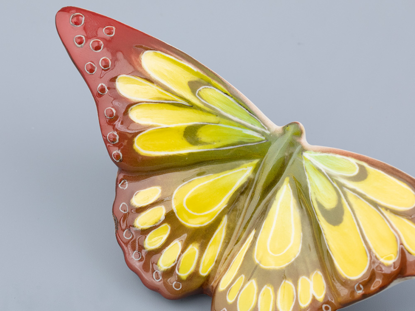 Яркие желтые бабочки в природе особенно заметны. Считается, что увидеть такую бабочку – к счастью и благополучию. Скульптура желтой бабочки станет не только ярким акцентом интерьера, но и замечательным талисманом вашего дома. Скульптура бабочки выполняется исключительно вручную – от этапа отливки до мягкой подглазурной росписи.