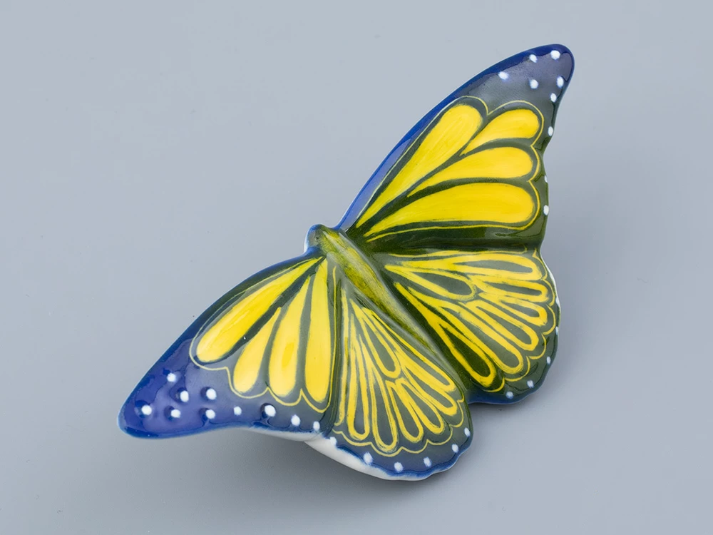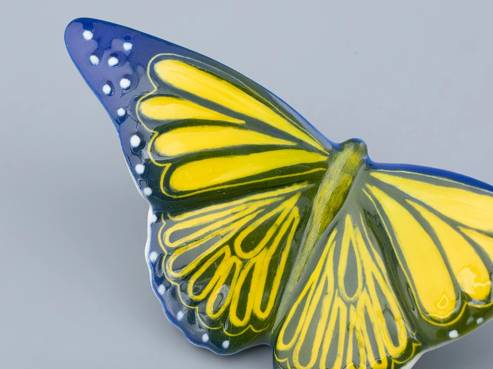 Синяя бабочка в природе – экземпляр редкий, и встречается она зачастую в далеких тропических странах. Миниатюрная скульптура синей бабочки будет желанным приобретением и подарком для любителей природы, а также станет утонченным дополнением интерьера. Скульптура бабочки выполняется исключительно вручную – от этапа отливки до мягкой подглазурной росписи.