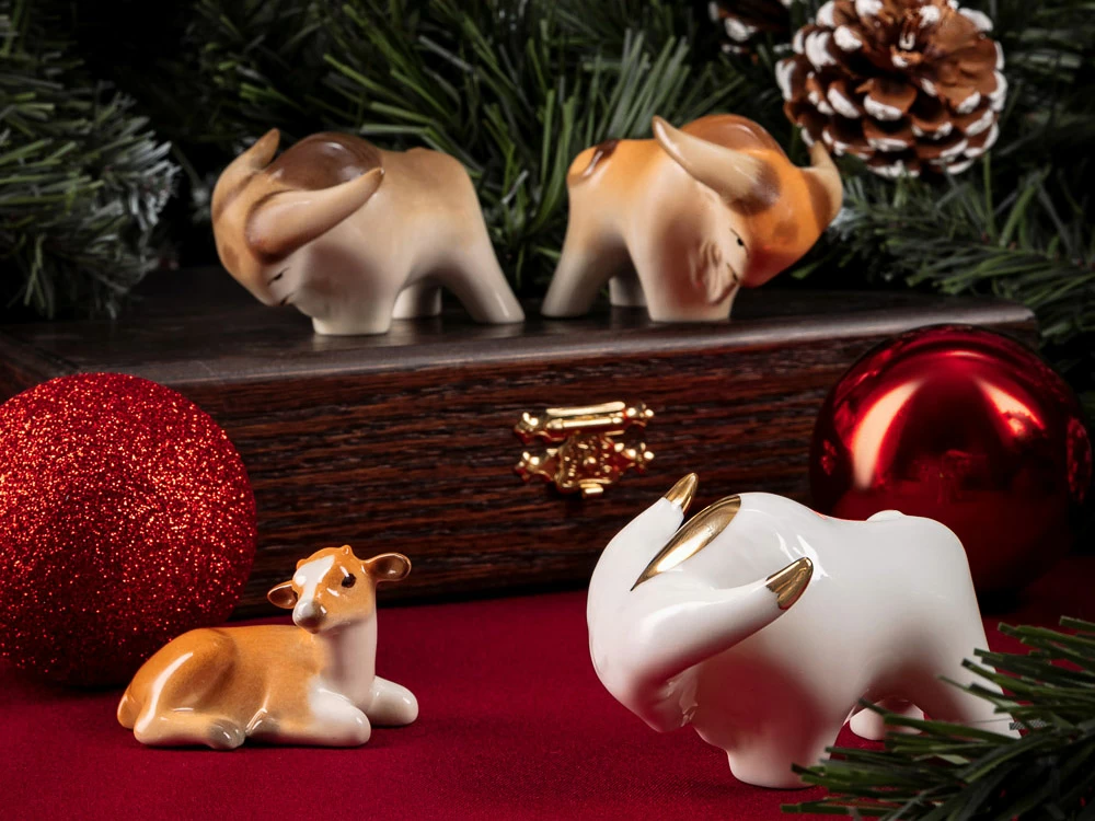 Согласно восточной философии, бык является олицетворением жизненной силы, плодородия и мощи. В новогодней анималистической серии "Символ года" вы найдете произведения от ведущих художников ИФЗ: милого «Бычка-малыша» и стильных «Быка» в разнообразных цветовых решениях, которые эффектно украсят Ваш интерьер. Скульптуры Императорского фарфорового завода наполнят дом своего владельца теплом и уютом, создавая чарующее настроение в канун Нового 2021 года!