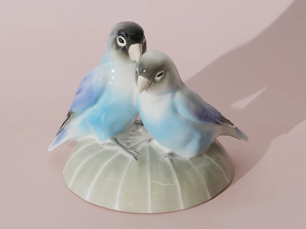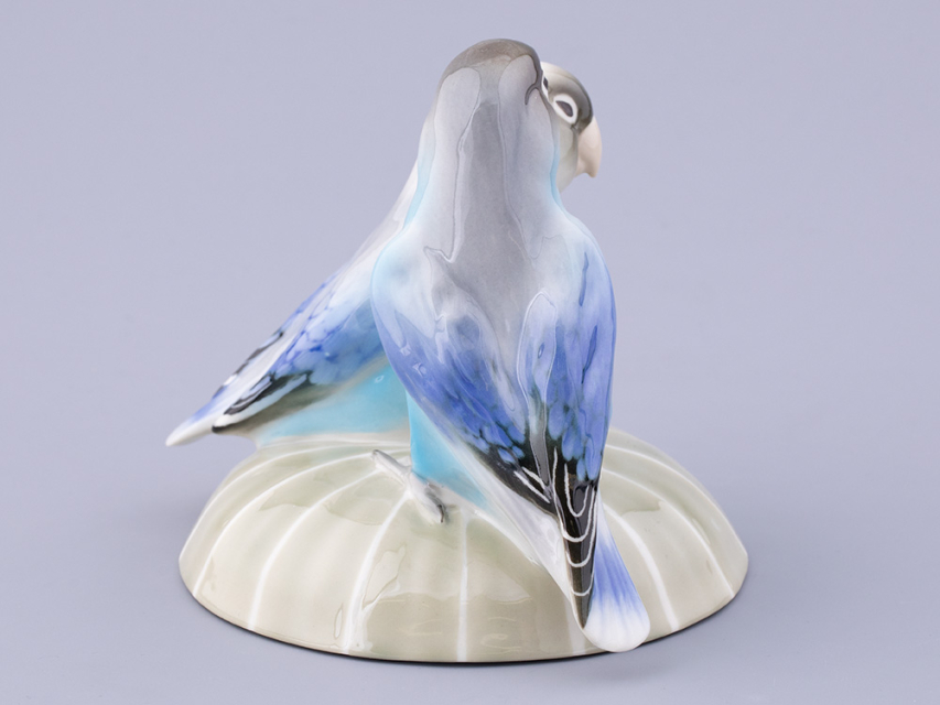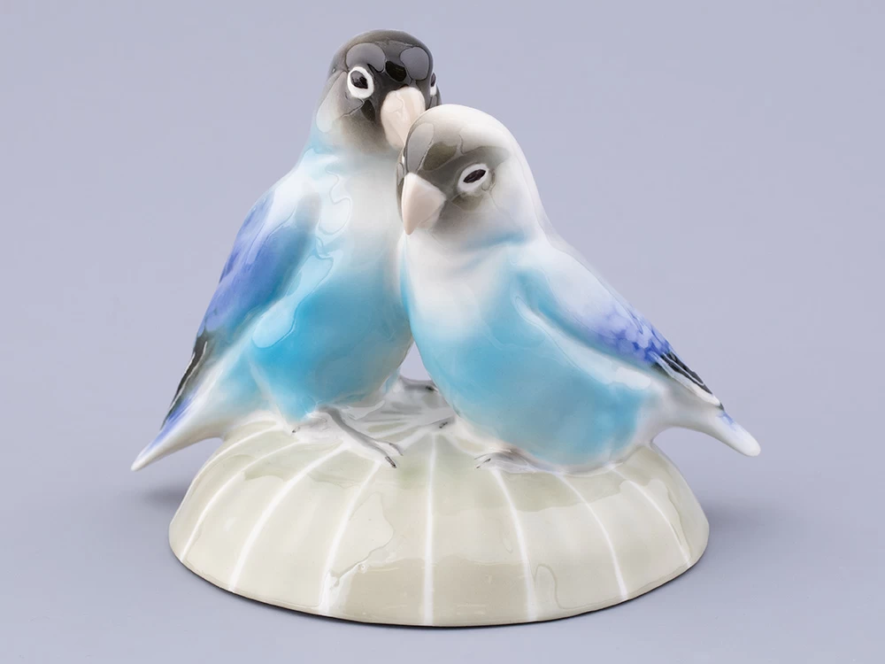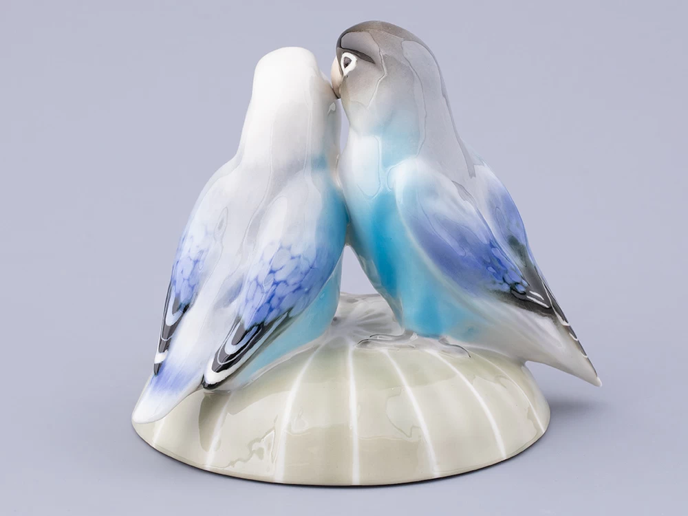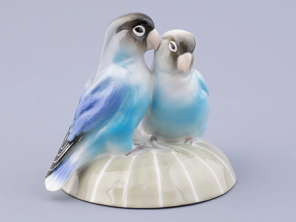 Эта очаровательная пара неразлучных попугайчиков, выполненная из мягкого фарфора, воплощает в себе символ верности и любви. Яркие краски их оперения переливаются на свету, придавая фигуркам живость и динамичность. Мастерски вылепленные перышки создают впечатление настоящего полета, а внимание к деталям делает этих птичек почти настоящими. Композиция передает не только внешнюю красоту птиц, но и их характерную привязанность друг к другу. Они сидят рядом, тесно прижавшись друг к другу, словно символизируя вечную связь и гармонию. Эта фарфоровая парочка станет идеальным украшением интерьера, добавляя ему теплоты и радости.