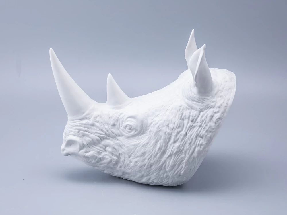 Скульптура форма Носорог голова, Белый бисквит, арт 82.49078.00.1