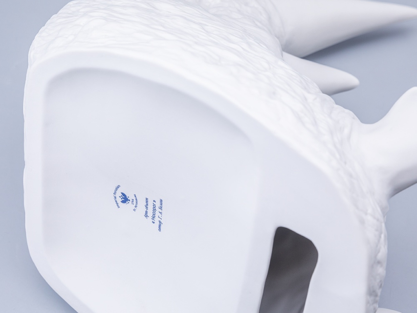 Скульптура Носорог – переосмысление образа одного из самых мощных и величественных животных планеты. Через призму бисквитного фарфора, автор Галина Белаш предлагает нам увидеть не столько физическую мощь, сколько духовную крепость. Матовая поверхность поглощает свет, создавая игру теней, подчеркивающих скульптурность формы, ее объем и фактуру. Это приглашение к созерцанию, к размышлению о силе, которая не нуждается в демонстрации, а существует имманентно.