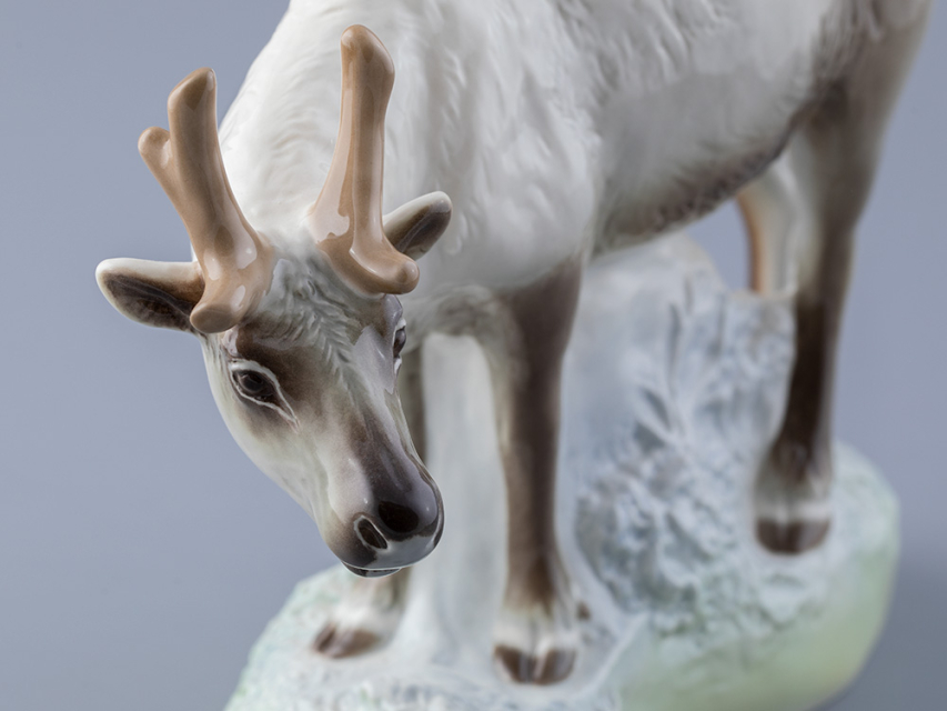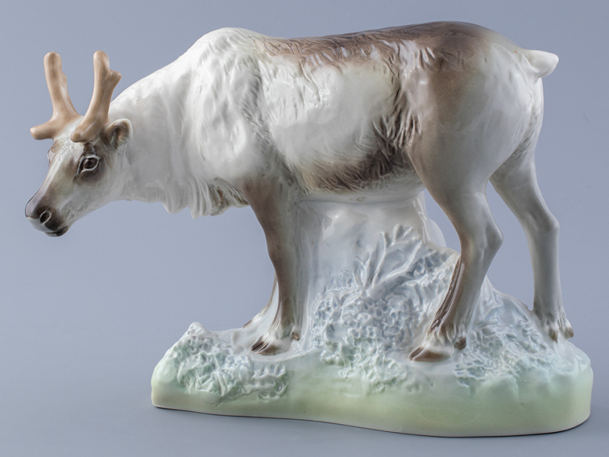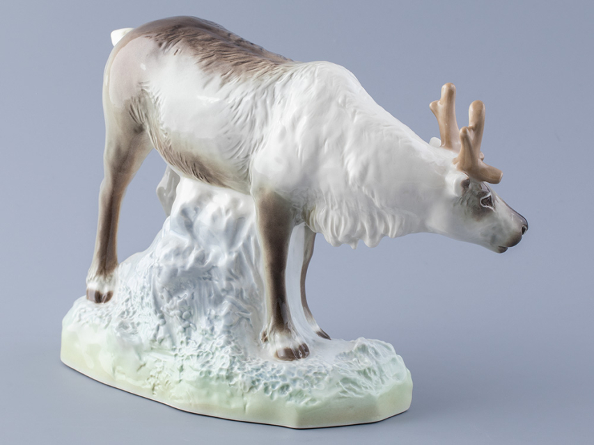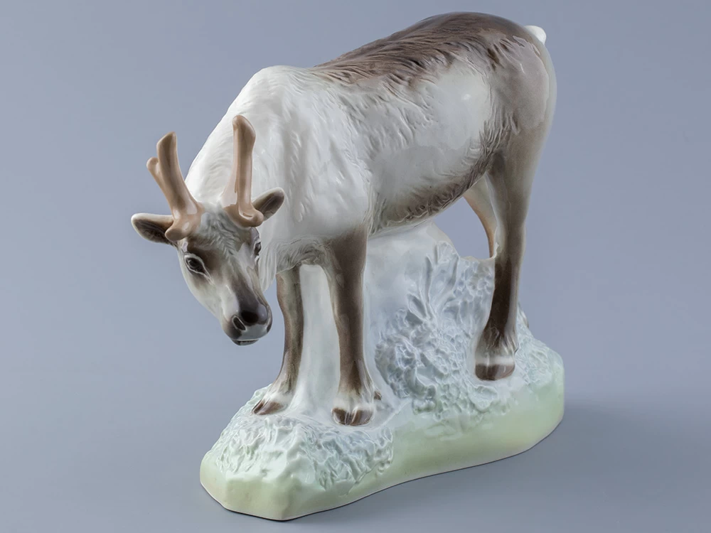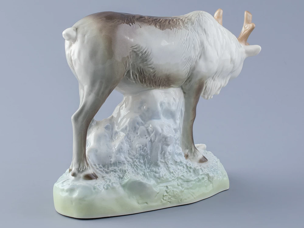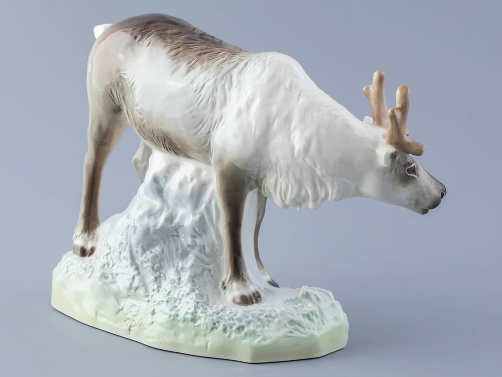 Эта изящная фарфоровая скульптура изображает величественного северного оленя в его естественной среде обитания. Выполненная вручную с исключительным вниманием к деталям, она воплощает грацию и силу этого животного.