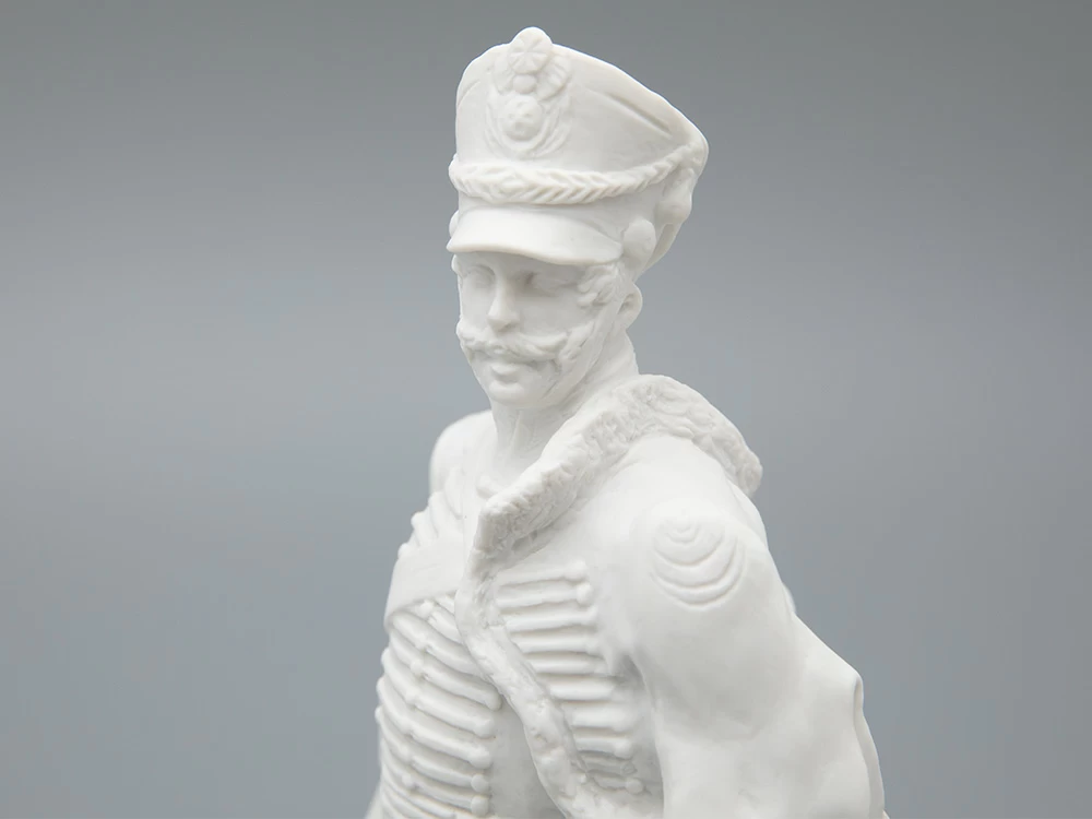 Уникальные исторические личности и образы продолжают вдохновлять художников и скульпторов Императорского фарфорового завода на создание новых произведений. В 2022 году завод совместно с Суворовским музеем положил начало серии скульптур, посвященных выдающимся русским полководцам и солдатам. Скульптурное изображение стрельца создал Алексей Ничепорчук, специализирующийся на воссоздании в фарфоре образов выдающихся личностей культуры и искусства. Фигура изображает гусара эпохи императора Александра I.