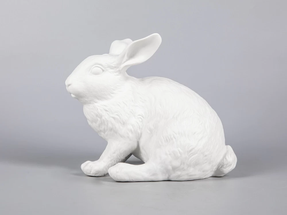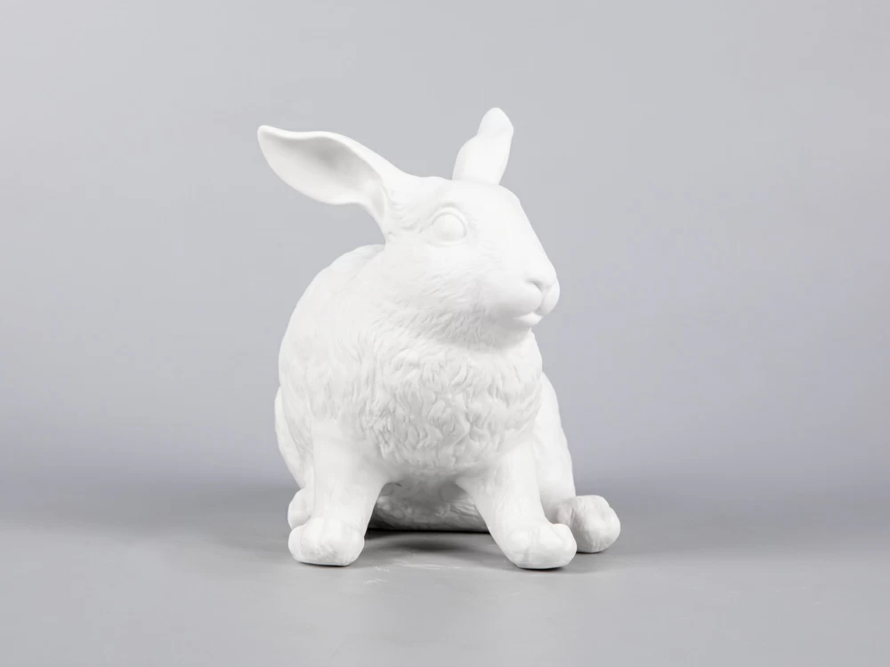 Скульптура кролика - покровителя 2023 года, исполнена с необыкновенной реалистичностью и внимаем к деталям: скульптор с удивительной точностью воспроизводит анатомические особенности и характерную пластику зверька. Скульптура выполнена в бисквите. Текстура неглазурованного фарфора подчеркивает фактуру меха кролика и придает ему дополнительную выразительность.