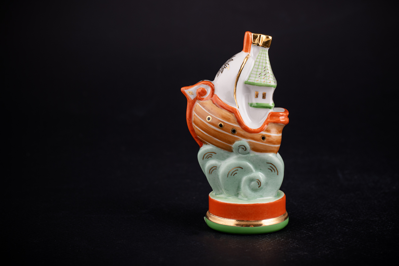 Скульптура Марины Никольской, изначально созданная для шахматного комплекта «Северные сказы», продолжает одну из наиболее ярких сюжетных линий пластики Императорского фарфорового завода – тему русской сказки, ярмарки, игры. Безукоризненная пластика, яркие краски и золото и делают фигурку ладьи изящным украшением интерьера.
