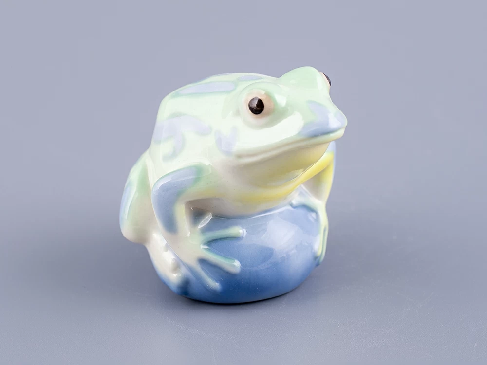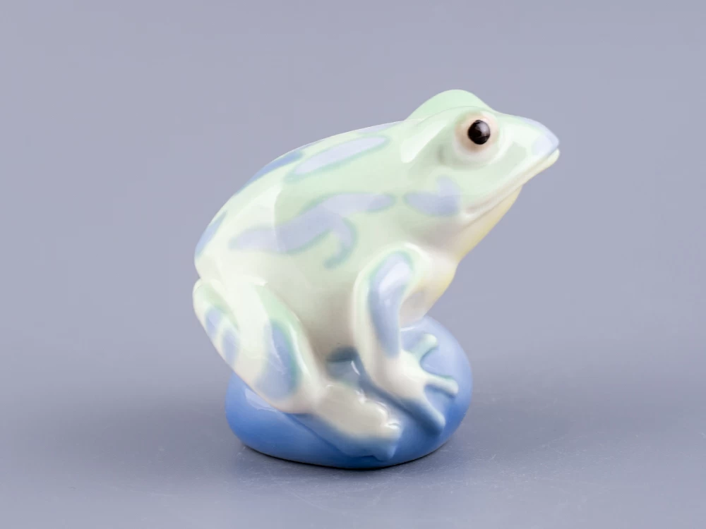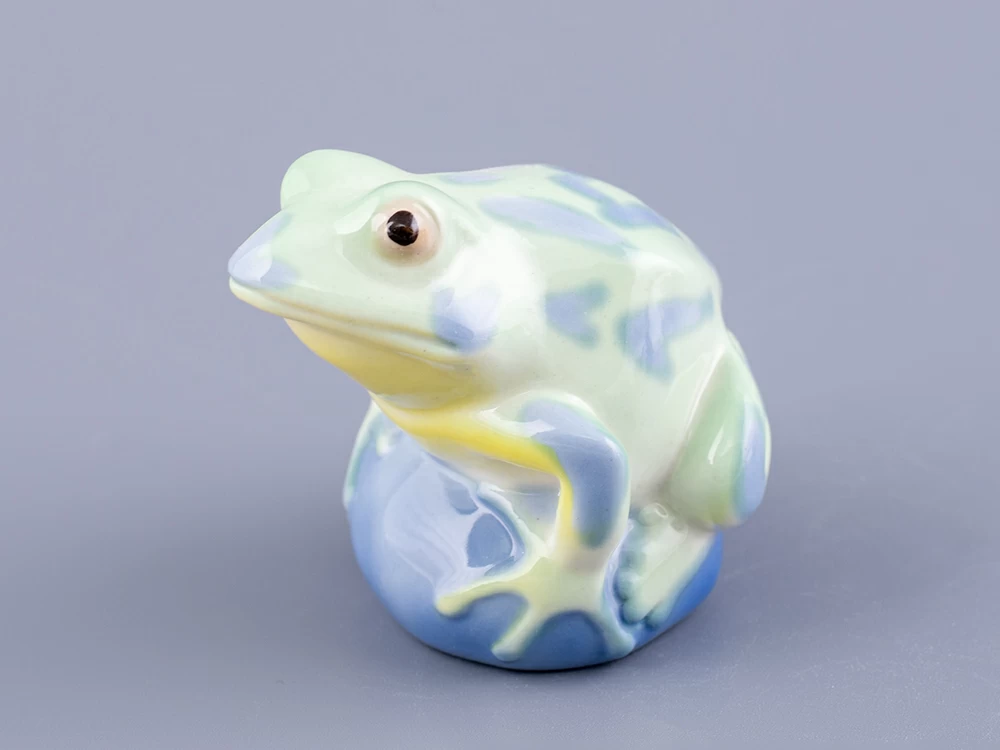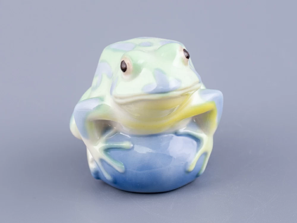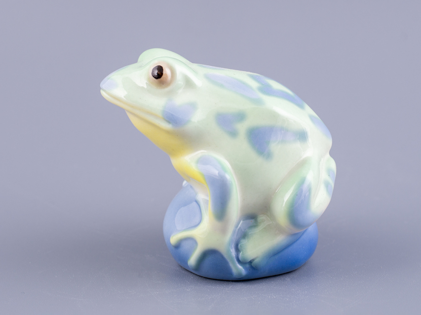 Скульптура "Лягушка Царевна" изготовлена на Императорском фарфоровом заводе из мягкого фарфора. Для декорирования используется ручная подглазурная роспись. Автор формы - Марина Никольская. Выпуск изделия начался в 2020 году. Анималистическая скульптура ИФЗ уходит корнями в XVIII век, когда Дмитрий Виноградов, создатель русского фарфора, изготовил первую отечественную фарфоровую скульптуру - медведя. Сегодня Императорский фарфоровый завод славится обширной коллекцией анималистики, которая формировалась на протяжении многих лет. Размеры изделия (длина х ширина) - 7.1 × 6 см., высота - 6.5 см., вес - 86 грамм.