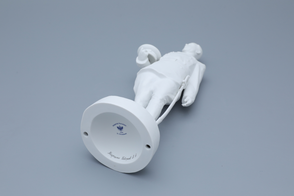 Скульптура выполняется из бисквитного фарфора и отливается исключительно вручную.