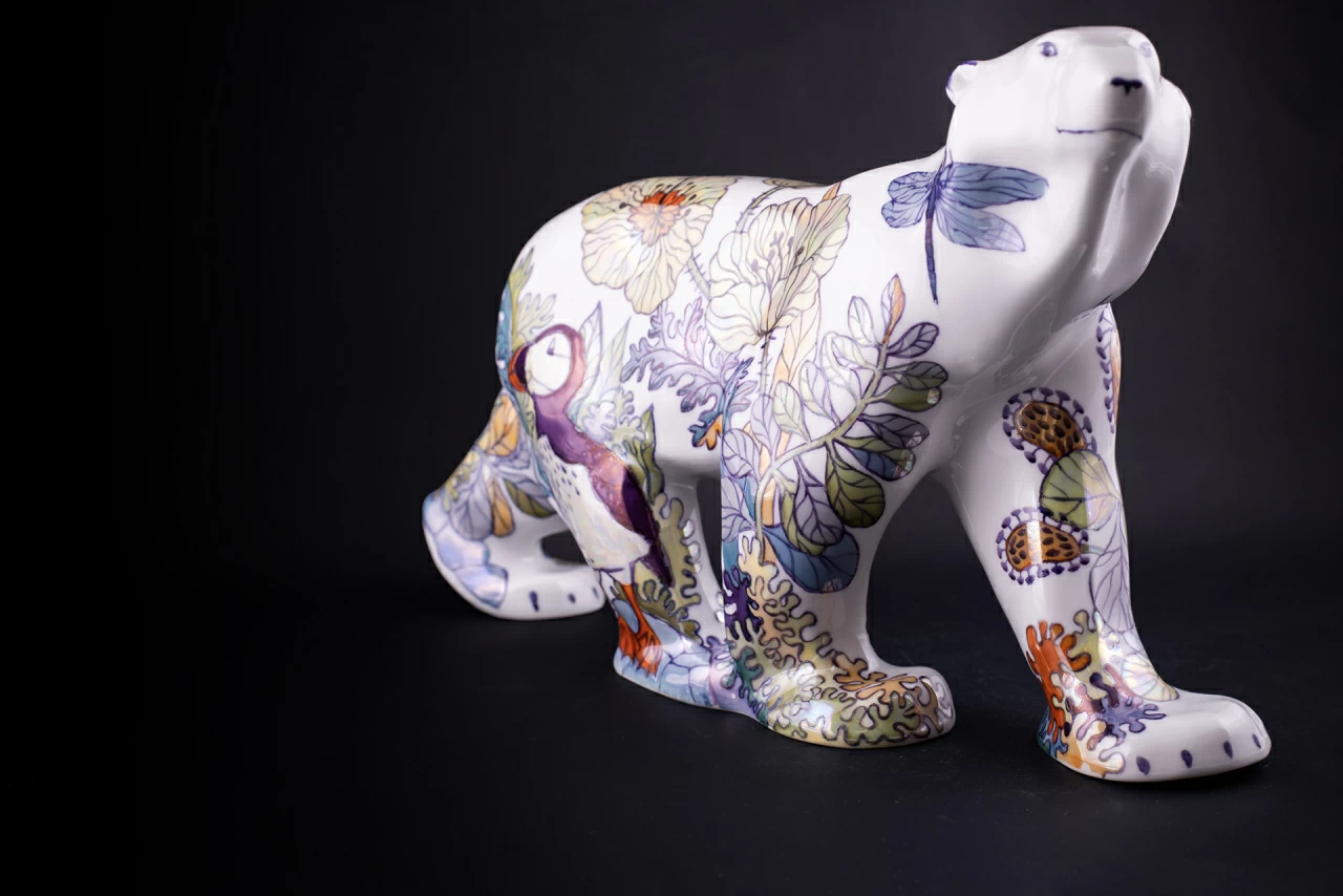 Скульптура Медведь идущий, большой размер, рисунок Цветущая Арктика 2, арт 62.16342.00.1