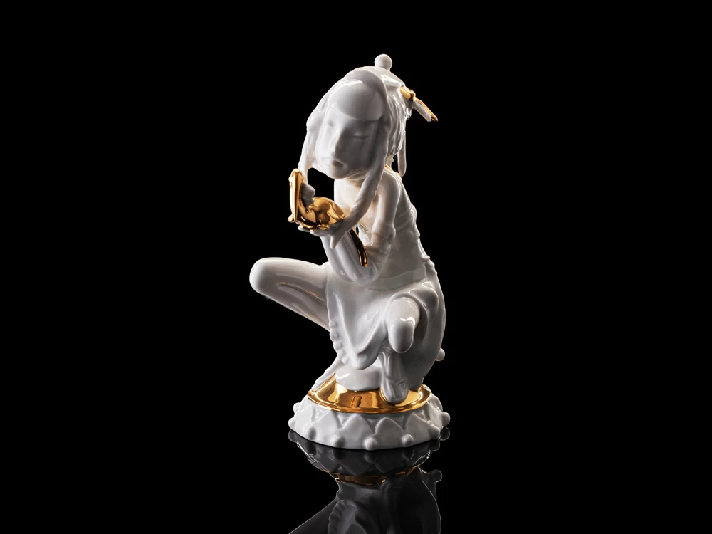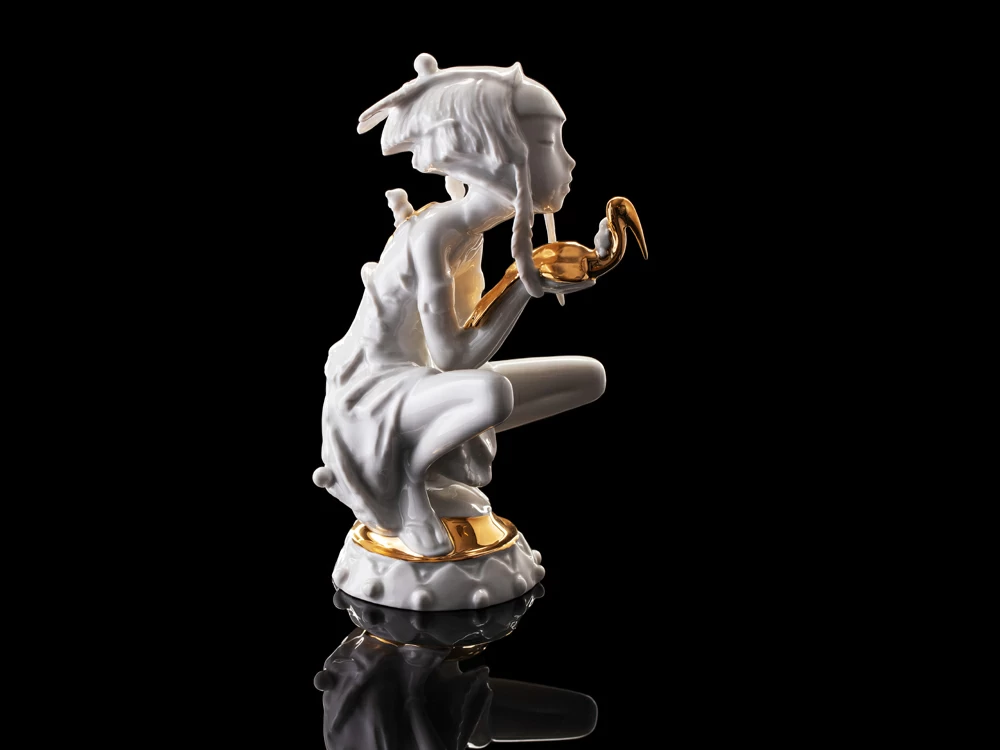Скульптор создает фантазийный образ с нотками разнообразных культур, в нем есть место изяществу и нежности, о чем напоминают игрушечные мишки, использованные в декоре. Автор дарит нам надежду встретить в жизни свою птицу удачи, получив в подарок благоденствие, умиротворение и возрождение.
