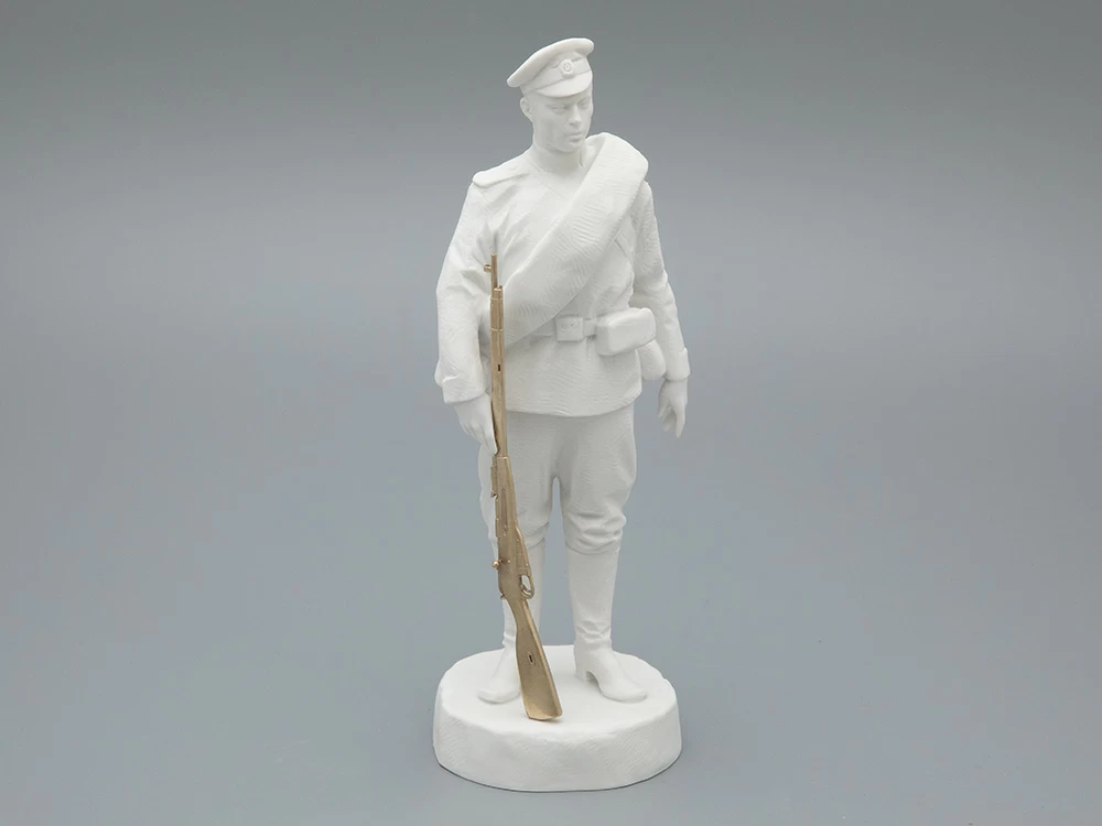 *Описание скульптур: из издания «Солдаты России. История в фарфоре. Каталог выставки.» — СПб.: СПбГУПТД, 2025. Авторы текстов: д. и. н., профессор А. В. Аранович, В. А. Безродин, О. Г. Леонов.