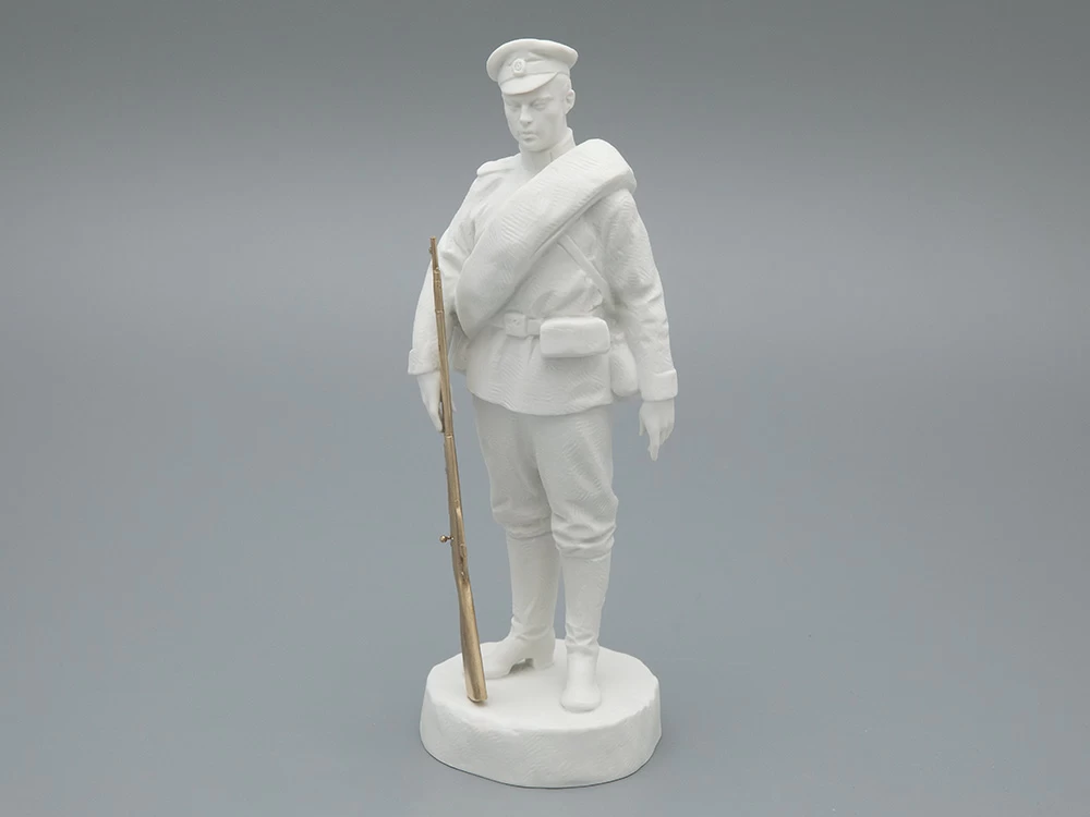 Уникальные исторические личности и образы продолжают вдохновлять художников и скульпторов Императорского фарфорового завода на создание новых произведений. В 2022 году завод совместно с Суворовским музеем положил начало серии скульптур, посвященных выдающимся русским полководцам и солдатам. Скульптурное изображение стрельца создал Алексей Ничепорчук, специализирующийся на воссоздании в фарфоре образов выдающихся личностей культуры и искусства. Фигура изображает нижний чин русской пехоты эпохи императора Николая II.