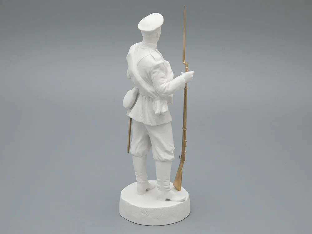 Уникальные исторические личности и образы продолжают вдохновлять художников и скульпторов Императорского фарфорового завода на создание новых произведений. В 2022 году завод совместно с Суворовским музеем положил начало серии скульптур, посвященных выдающимся русским полководцам и солдатам. Скульптурное изображение стрельца создал Алексей Ничепорчук, специализирующийся на воссоздании в фарфоре образов выдающихся личностей культуры и искусства. Фигура изображает нижний чин русской пехоты эпохи императора Александра III.