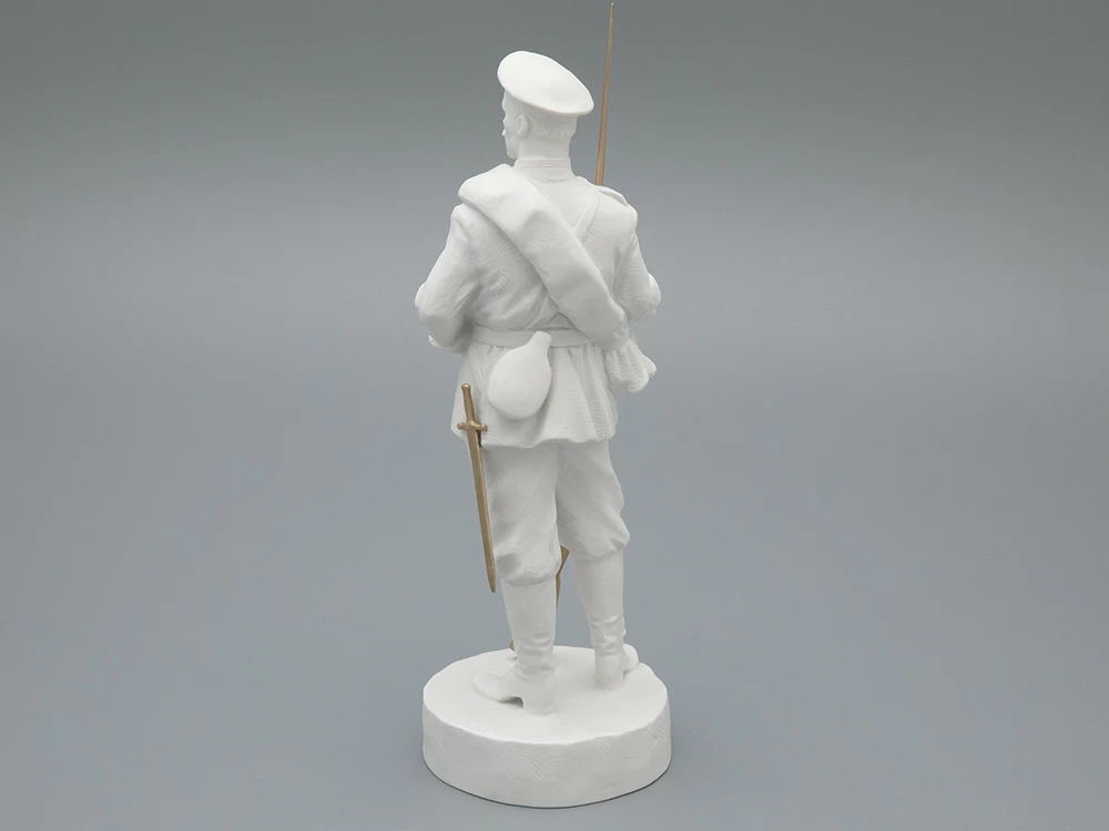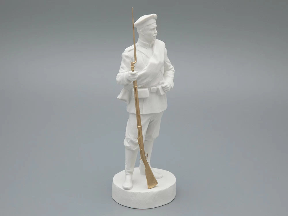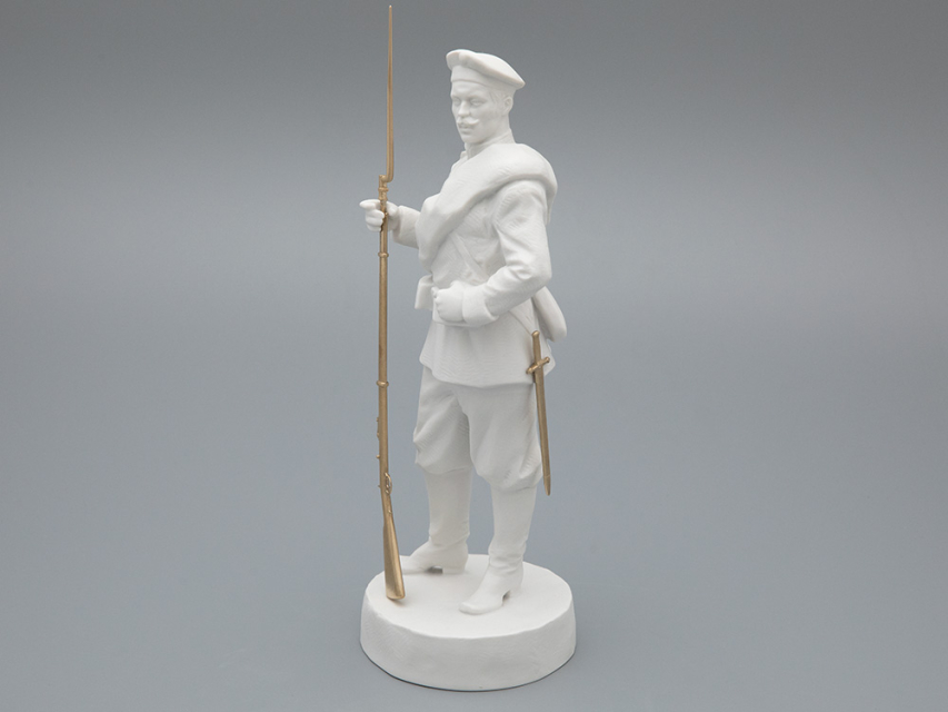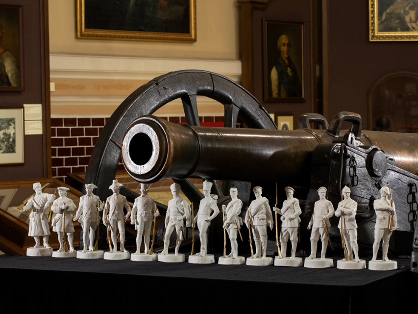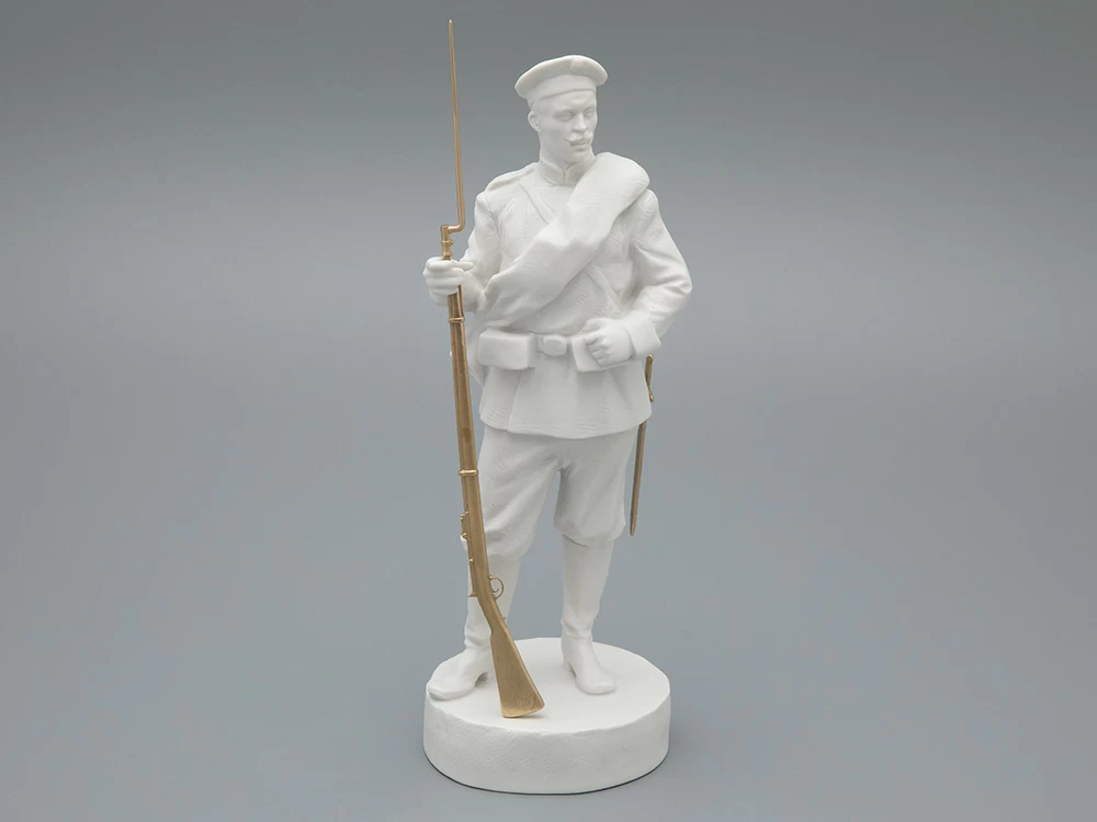 *Описание скульптур: из издания «Солдаты России. История в фарфоре. Каталог выставки.» — СПб.: СПбГУПТД, 2025. Авторы текстов: д. и. н., профессор А. В. Аранович, В. А. Безродин, О. Г. Леонов.