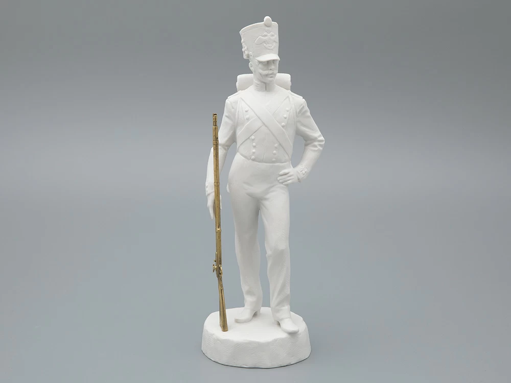 Уникальные исторические личности и образы продолжают вдохновлять художников и скульпторов Императорского фарфорового завода на создание новых произведений. В 2022 году завод совместно с Суворовским музеем положил начало серии скульптур, посвященных выдающимся русским полководцам и солдатам. Скульптурное изображение стрельца создал Алексей Ничепорчук, специализирующийся на воссоздании в фарфоре образов выдающихся личностей культуры и искусства. Фигура изображает нижний чин русской пехоты эпохи императора Николая I.