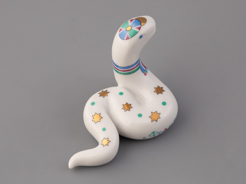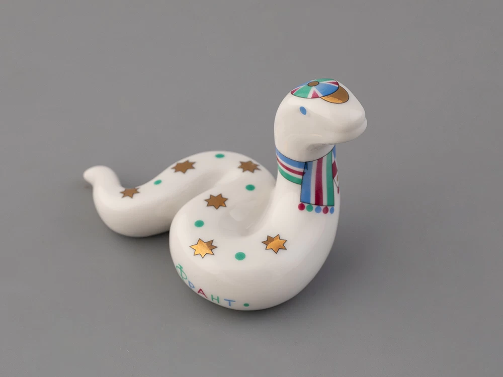 Фарфоровая миниатюра – это очаровательное произведение фарфорового искусства. Не зря говорят, что самое важное кроется в деталях. Даже самая крохотная скульптура расскажет многое о своем владельце. Змейка под названием «Франт» украшена эффектным рисунком – звездами и шапочкой с шарфом – и станет замечательным подарком для человека, который ценит стиль и моду.