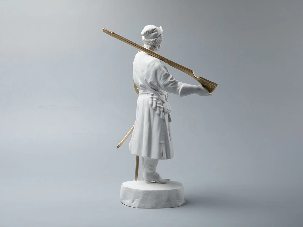 Уникальные исторические личности и образы продолжают вдохновлять художников и скульпторов Императорского фарфорового завода на создание новых произведений. В 2022 году завод совместно с Суворовским музеем положил начало серии скульптур, посвященных выдающимся русским полководцам и солдатам. Скульптурное изображение стрельца создал Алексей Ничепорчук, специализирующийся на воссоздании в фарфоре образов выдающихся личностей культуры и искусства. Фигура изображает стрельца – служилого человека XVI – начала XVIII вв, вооруженного огненным боем.