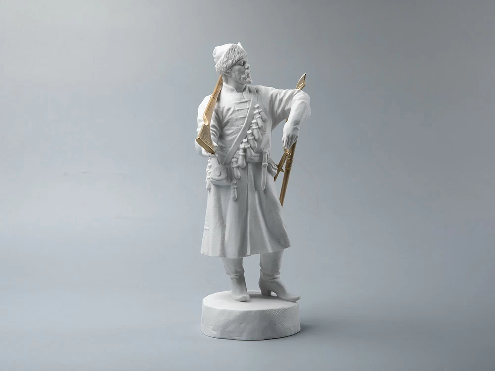 Для исполнения скульптуры автор выбрал бисквит – неглазурованный фарфор, – что позволило тщательнее проработать мельчайшие детали.
