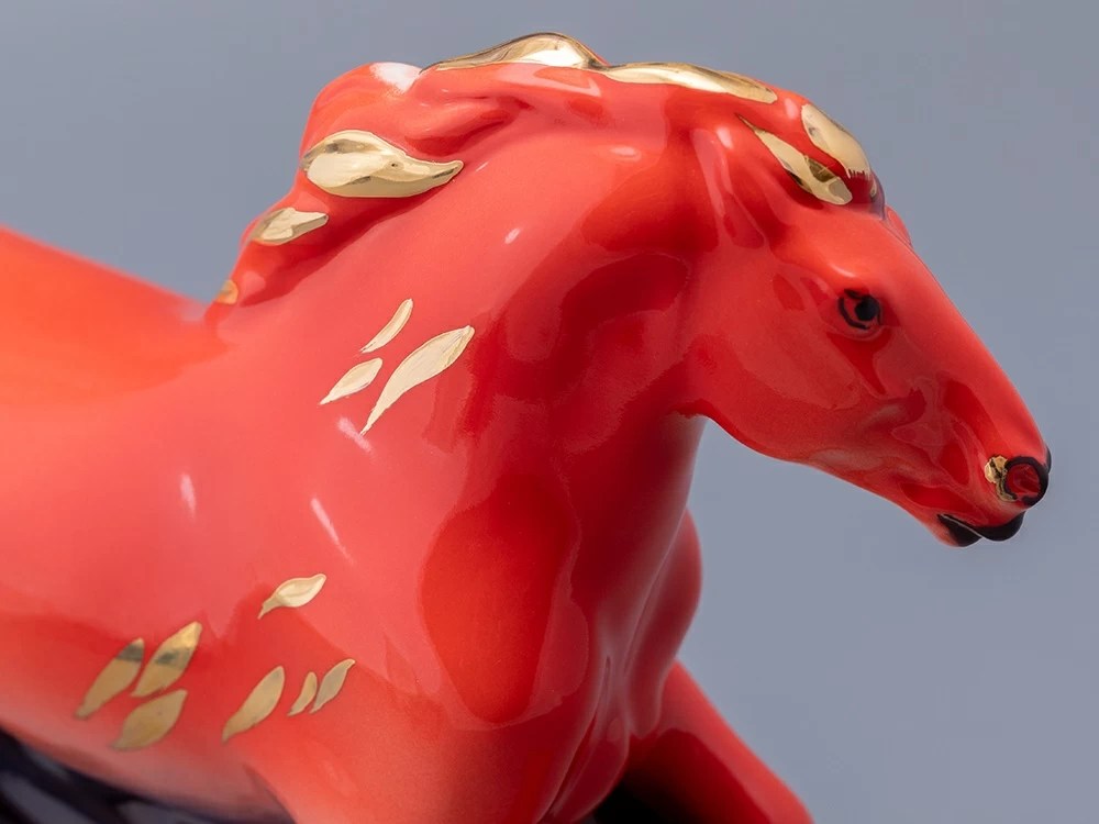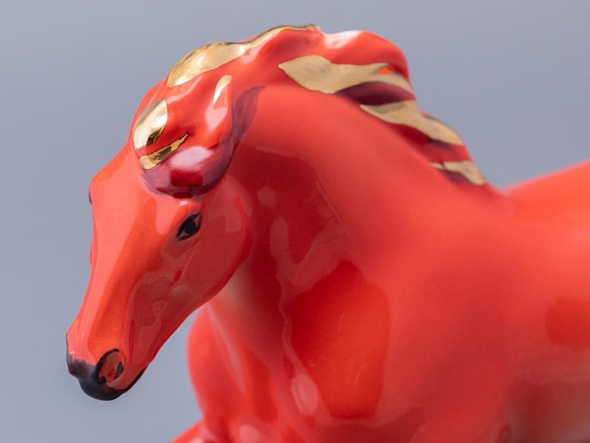 Скульптор Галина Белаш воплотила в фарфоре величественную лошадь на просторах лугов. Восхитительная фигура лошади, выполненная из фарфора, наполнена движением и энергией жизни. Ее бег символизирует стремление вперед, свободу мысли и внутреннюю гармонию. Точное соблюдение пропорций и пластики животного сочетается с ручной надглазурной росписью. Созданная Заслуженным художником РФ Татьяной Чапургиной, роспись создает тонкую игру света и тени, сияя натуральным золотом и блеском ярких красок. Скульптура идеально подойдет для украшения жилого пространства или рабочего кабинета, прекрасно расположится на книжной полке, выделится на журнальном столике или на каминной полке.