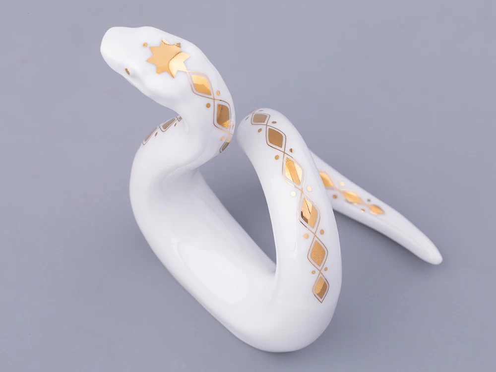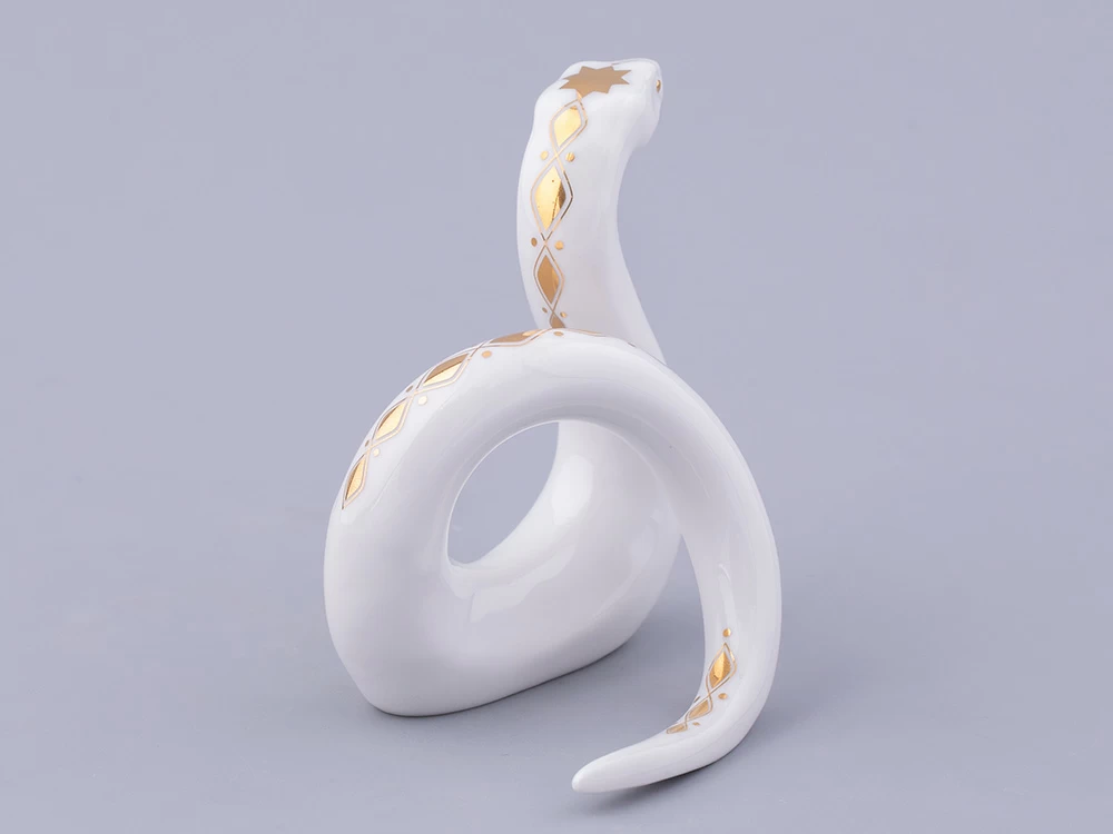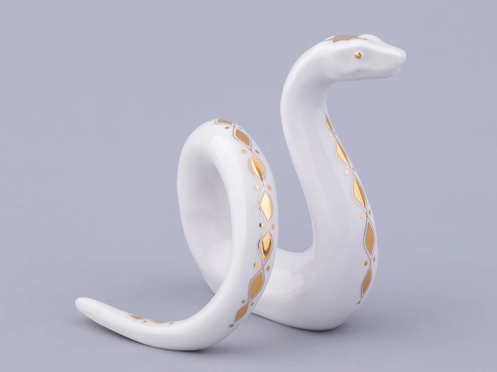 «Аурум» вошла в коллекцию скульптуры, посвященной символу 2025 года. Змея, дополненная изысканным золотым декором, станет очаровательным акцентом интерьера, замечательно подойдет для декора праздничного стола, а также сервировки. Например, благодаря ее форме, скульптуру «Аурум» можно использовать как кольцо для салфетки.