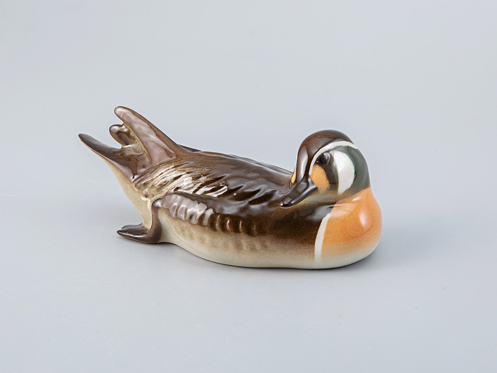Скульптура Байкальская утка изготовлена на Императорском фарфоровом заводе из мягкого фарфора в технике ручной подглазурной росписи. Автор формы - Веселов П.П. Высота скульптуры - 6,4 см.