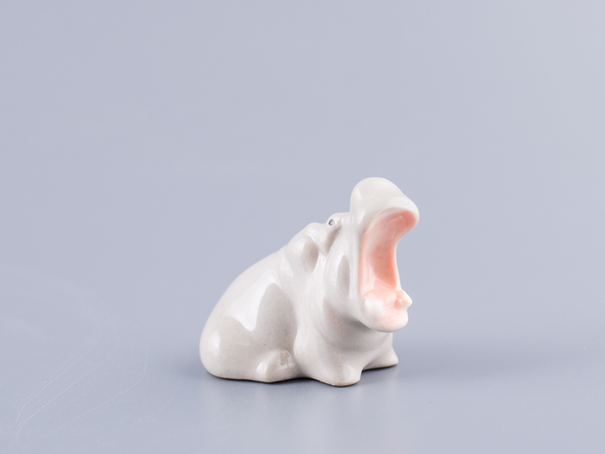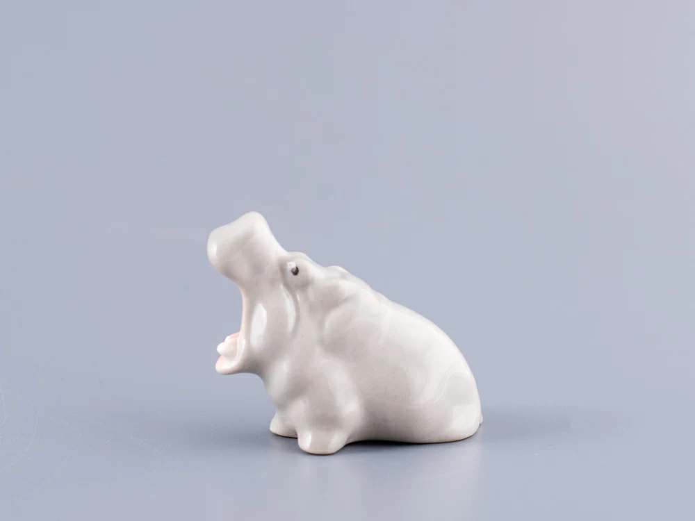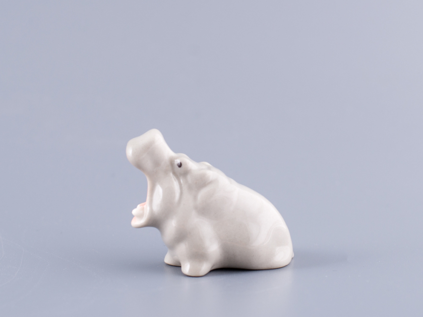 Скульптура Бегемотик изготовлена на Императорском фарфоровом заводе из мягкого фарфора в технике ручной подглазурной росписи. Автор формы - Воробьев Б.Я. Высота скульптуры - 38 мм. Скульптура "Бегемотик" создана в 1949 году заслуженным художником РСФСР Воробьевым Борисом Яковлевичем.