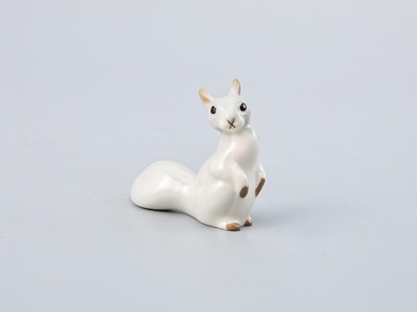 Скульптура Белочка изготовлена на Императорском фарфоровом заводе из мягкого фарфора в технике ручной подглазурной росписи. Автор формы - Муратов Н.Е. Высота скульптуры - 40 мм. Скульптура "Белочка" создана в 1954 году Муратовым Н.Е.