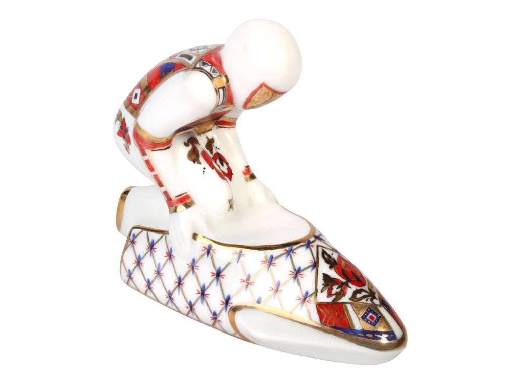 Каждая скульптура серии «Спортсмены» сочетает в себе особую выразительную пластику, присущую представленному виду спорта, и изысканную стилизованную декоративную роспись. Используя русские народные орнаментальные мотивы и фирменный стиль Императорского фарфорового завода – кобальтовую сетку и роспись золотом – А. Михайловой удаётся создать цельный и характерный образ русского спортсмена.