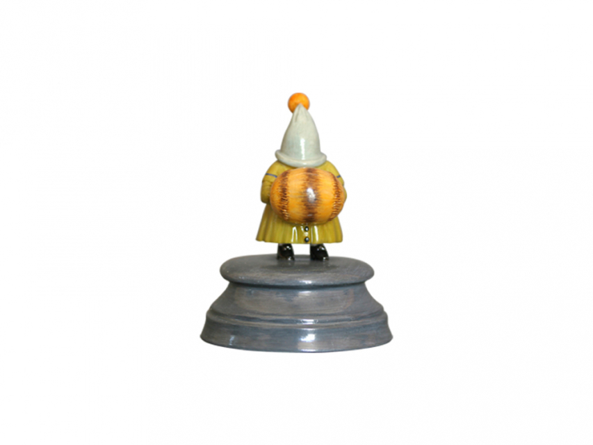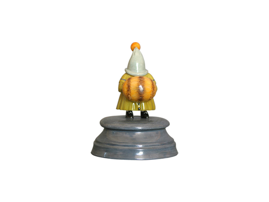 Роспись выполнена в технике надглазурной живописи надглазурными красками. Коллекция включает в себя 12 скульптур, из которых с первой по шестую – взрослые гости и с седьмой по двенадцатую – дети. Скульптура изображает маленького гостя в грязно-желтом плаще с перилиной и серой шапке-колпаке с оранжевым помпоном. На руках гостя бледно-оранжевая с темными полосами муфта. Скульптура на постаменте в форме усеченного конуса с горизонтальным круговым рельефом. На дне постаменте стоит название, надпись «Персонаж балета “Щелкунчик”», подпись Шемякина и клеймо «Орел»