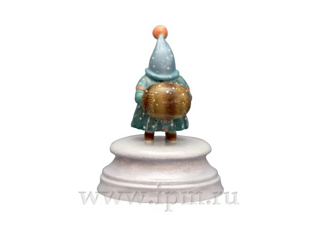 Роспись выполнена в технике надглазурной живописи надглазурными красками. Коллекция включает в себя 12 скульптур, из которых с первой по шестую – взрослые гости и с седьмой по двенадцатую – дети. Скульптура изображает маленького гостя в зеленом плаще с перилиной и серо-голубой шапке-колпаке с оранжевым помпоном. На руках гостя коричневая с темными полосами муфта. Скульптура на постаменте в форме усеченного конуса с горизонтальным круговым рельефом. На дне постаменте название, надпись «Персонаж балета “Щелкунчик”», подпись Шемякина и клеймо «Орел»