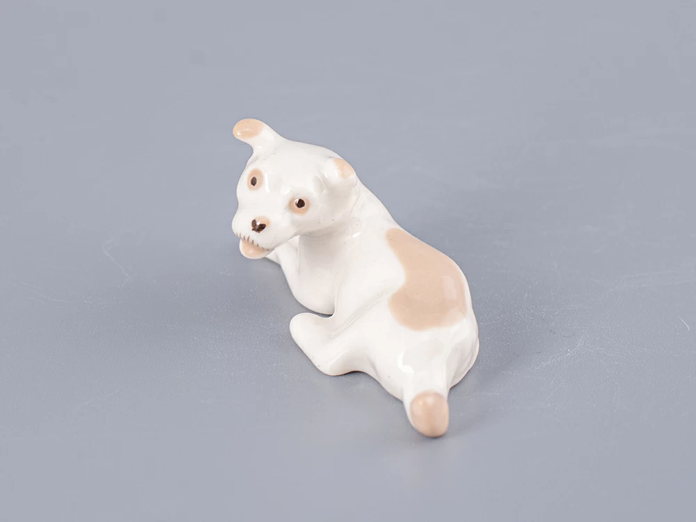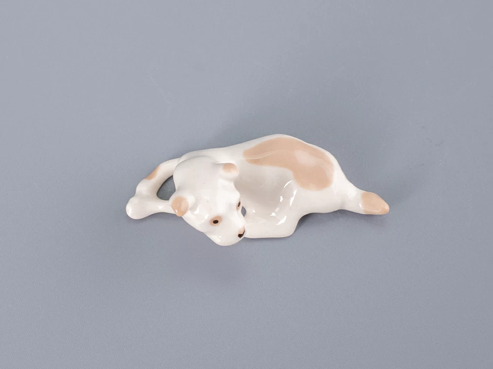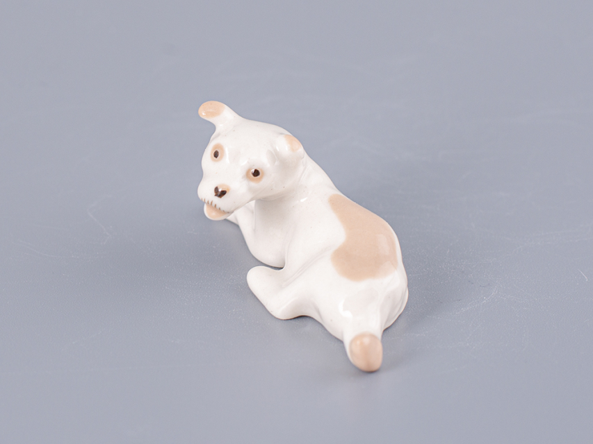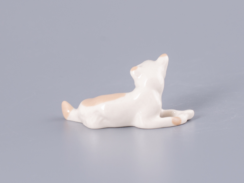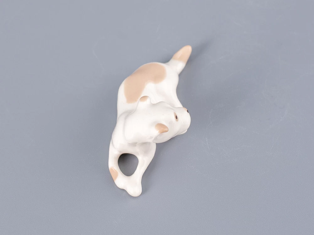 Скульптура Дворняжка изготовлена на Императорском фарфоровом заводе из мягкого фарфора в технике ручной подглазурной росписи. Автор формы - Муратов Н.Е. Высота скульптуры - 28 мм. Скульптура "Дворняжка" создана в 1955 году Муратовым Н.Е.