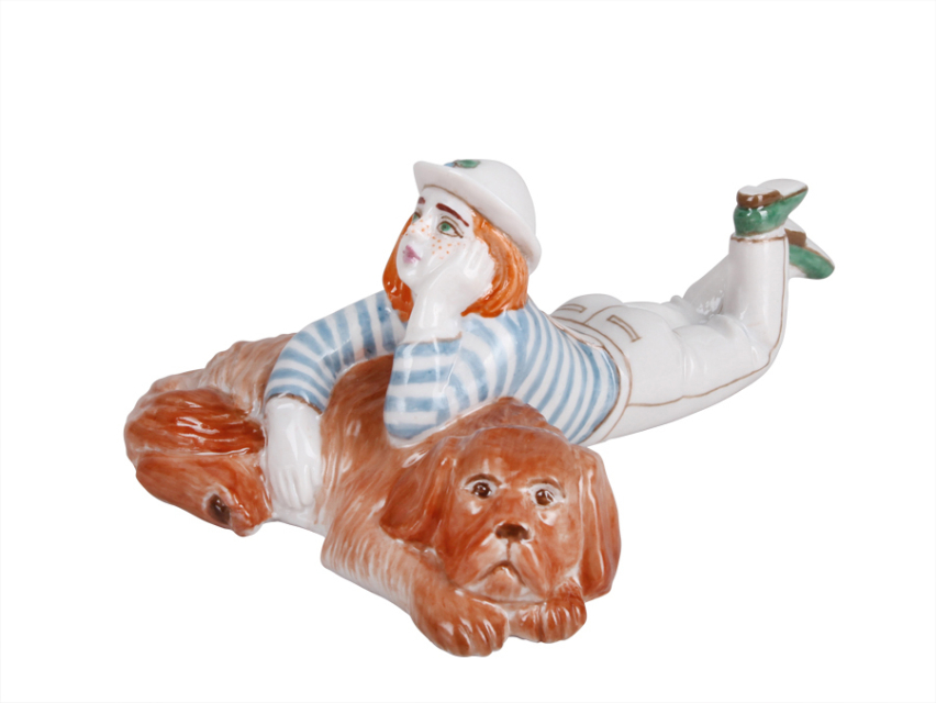 Трогательная скульптурная мизансцена изображает мечтательную рыжеволосую веснушчатую девочку в матроске, обнимающую верного друга – любимую собаку. Композиция олицетворяет ностальгию по советскому прошлому, возвращает нас в беззаботное, счастливое детство. Фигурка отличается органичностью скульптурного решения, лёгкостью и живостью созданного образа, обаянием и душевной теплотой и является маленьким олицетворением счастья.