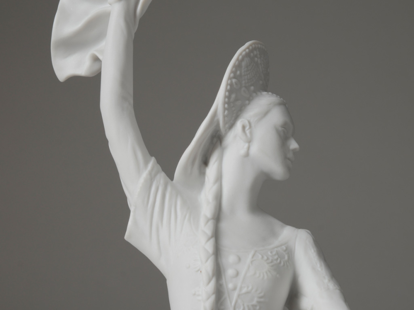 Серию реалистических скульптур, посвященную современным мэтрам русского балета, разработал скульптор завода Анатолий Данилов. К балетной коллекции относится и скульптура «Русская», представляющая народную артистку России Ульяну Лопаткину в «Русском танце» из балета П.И. Чайковского «Лебединое озеро». Автор зафиксировал в фарфоре динамику танца, выразительные движения рук, положение корпуса и ног. Имея одну точку опоры, работа технологически сложна в производстве. Современные герои произведений новой балетной серии, в том числе и У.В. Лопаткина, участвовали в процессе создания работ на этапе подготовки пластилиновых эскизов: позировали автору, в том числе и в соответствующих костюмах, делились тонкостями балетного мастерства, корректировали чистоту выполнения элементов создаваемых моделей.