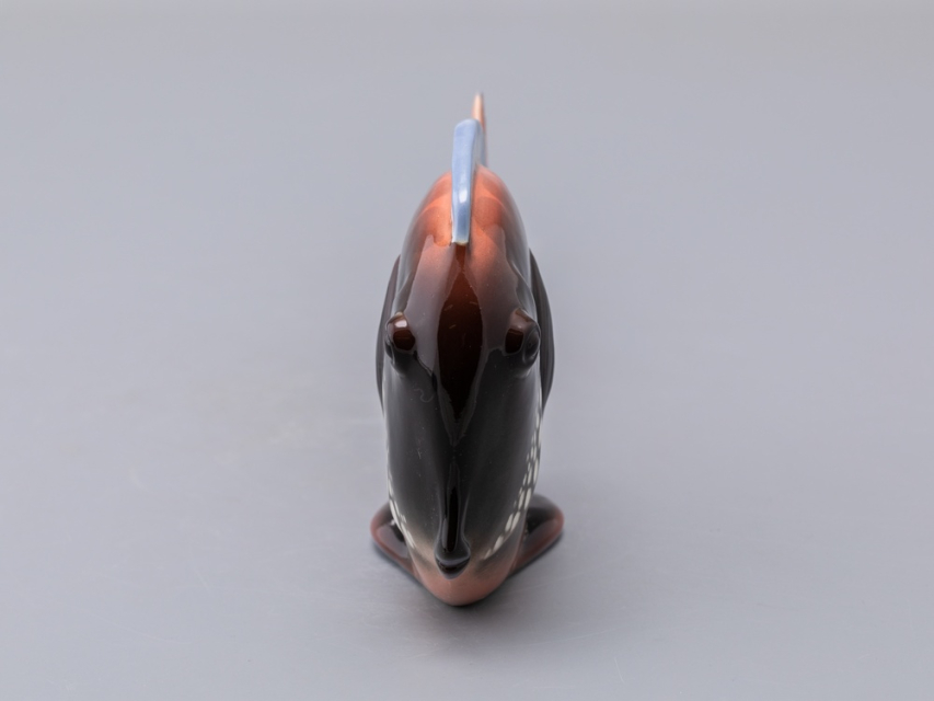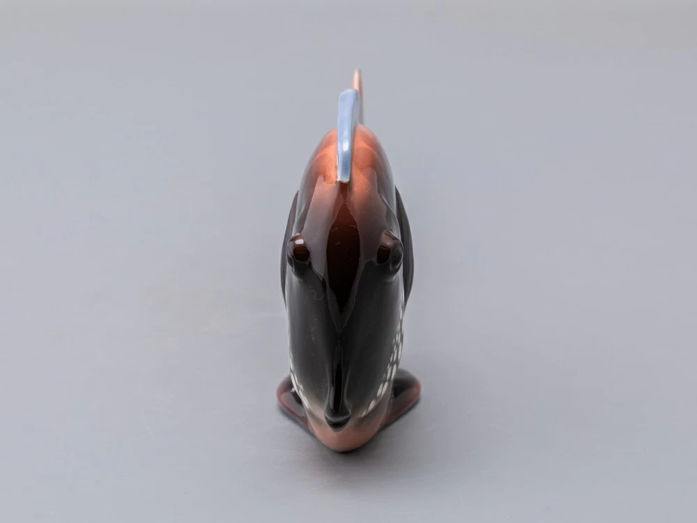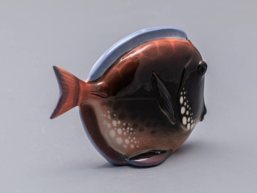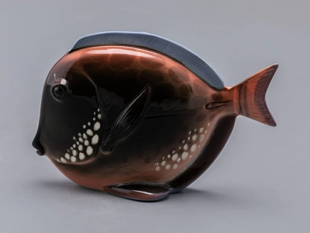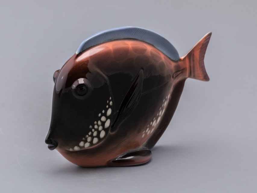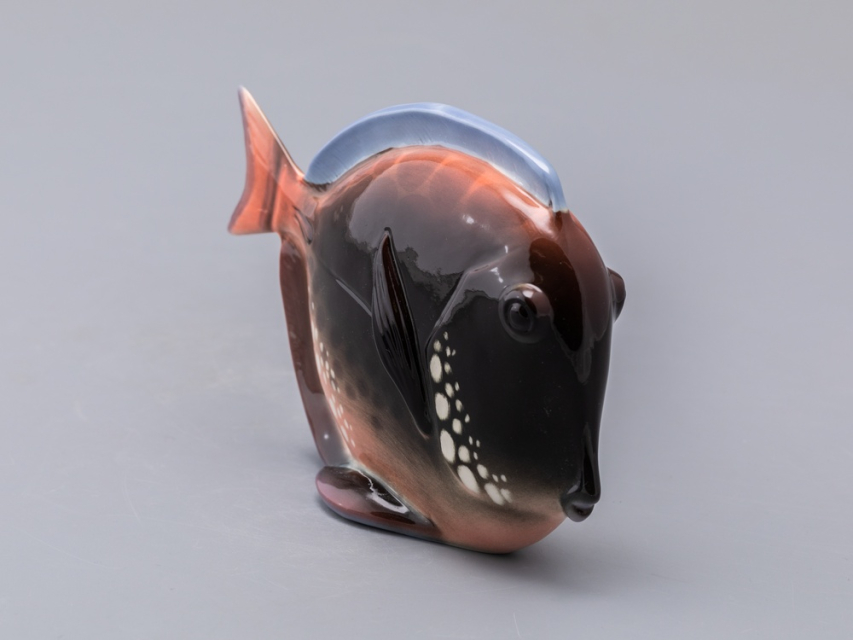 Появившаяся в конце 1970-х годов серия декоративных рыб – пример крайнего случая "однофасадной" композиции. Главные средства выразительности этих больших, но сильно уплощенных тропических рыб – силуэт и яркая роспись. И если в силуэтах сохранены природные формы, то, в передаче чешуи и, особенно в росписи, автор явно экспериментирует – конечно, в целях усиления декоративности этих замечательных скульптур.