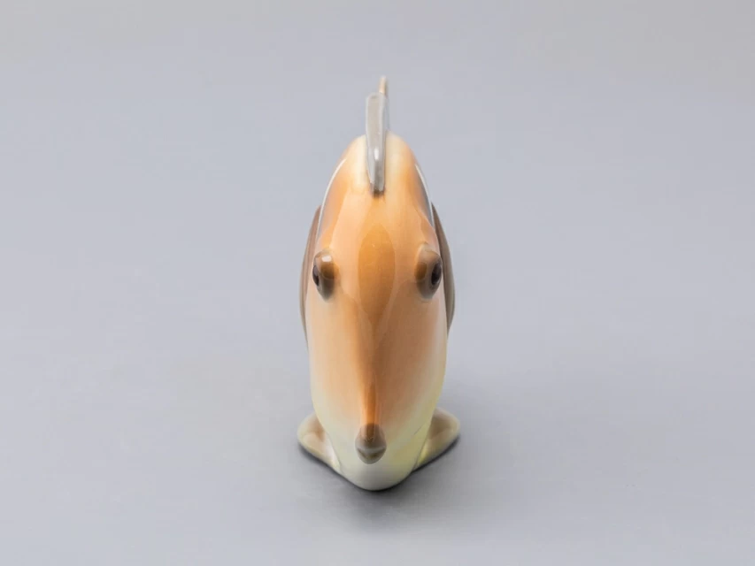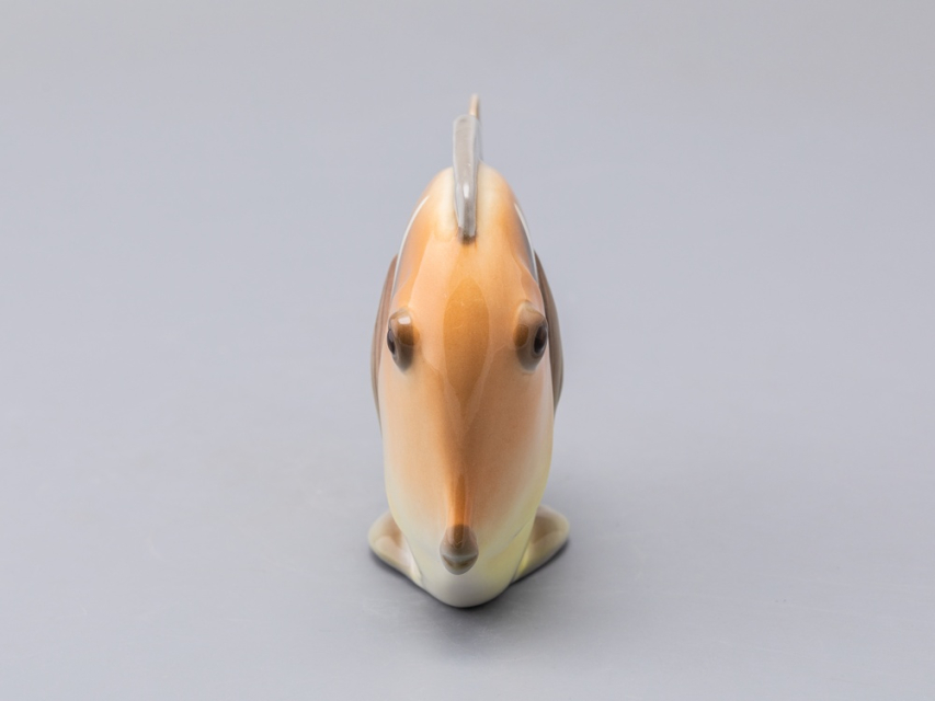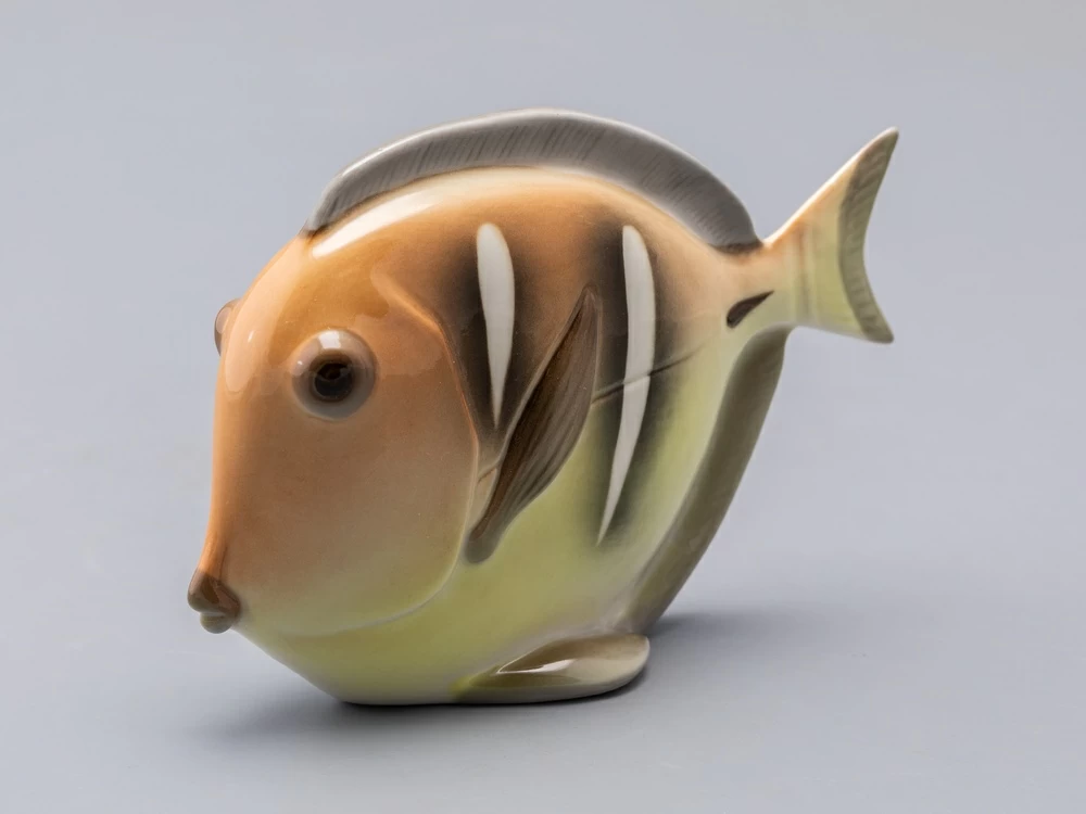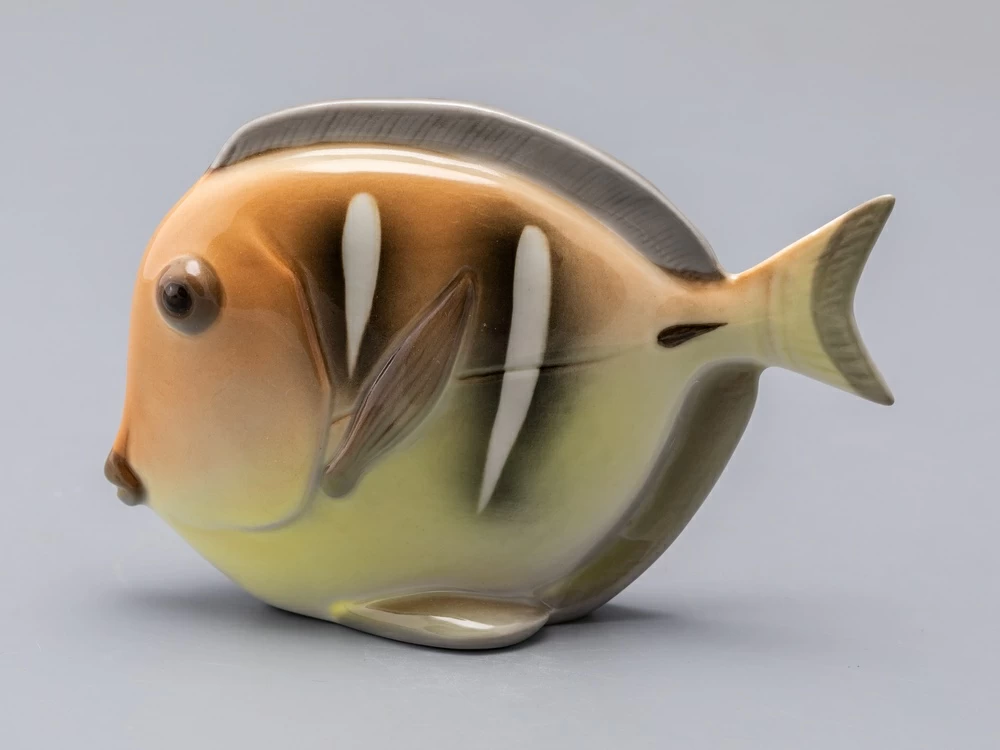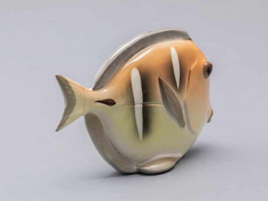 Появившаяся в конце 1970-х годов серия декоративных рыб – пример крайнего случая "однофасадной" композиции. Главные средства выразительности этих больших, но сильно уплощенных тропических рыб – силуэт и яркая роспись. И если в силуэтах сохранены природные формы, то, в передаче чешуи и, особенно в росписи, автор явно экспериментирует – конечно, в целях усиления декоративности этих замечательных скульптур.