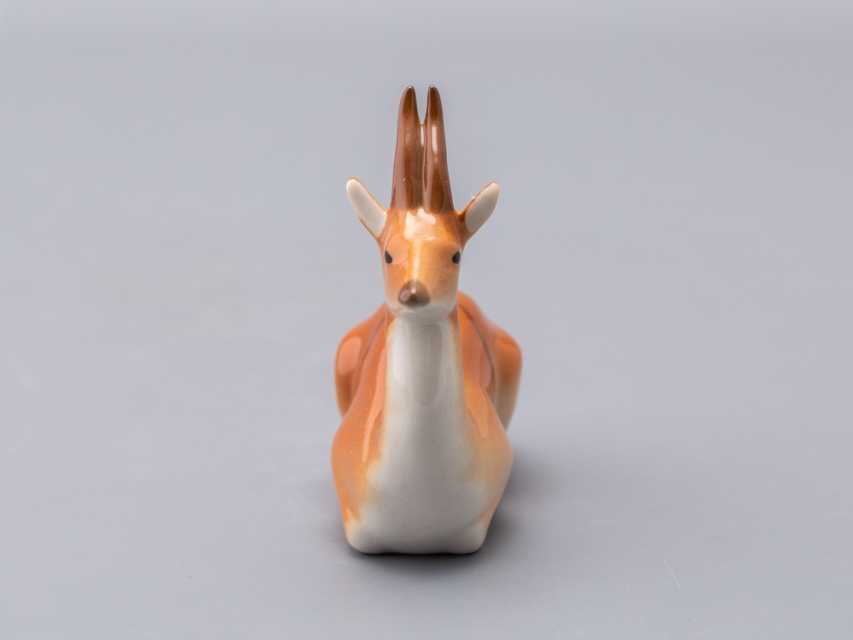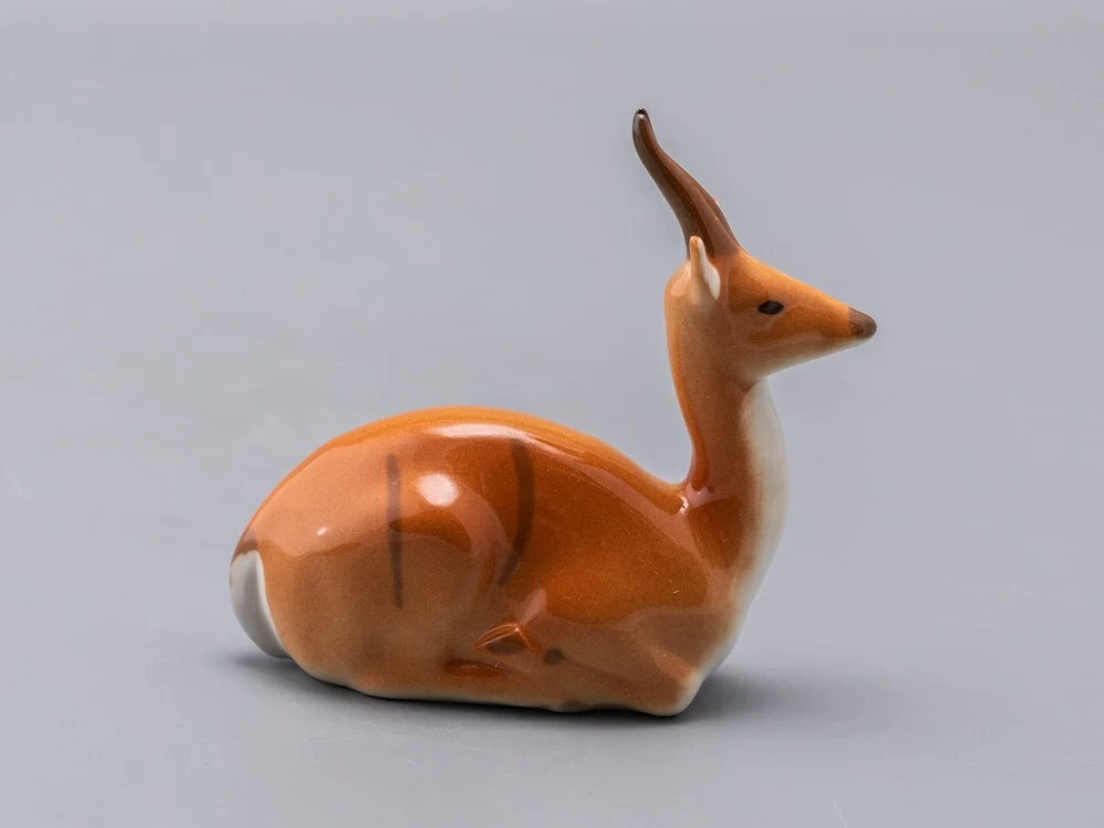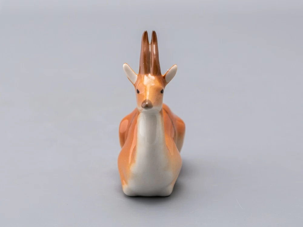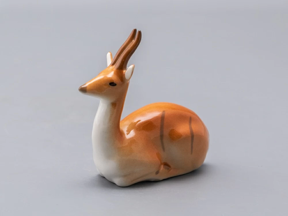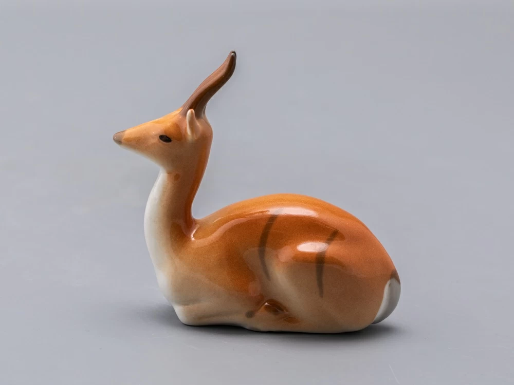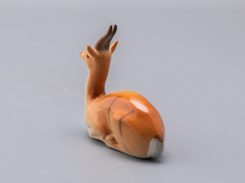 Скульптура Газель изготовлена на Императорском фарфоровом заводе из мягкого фарфора в технике ручной подглазурной росписи. Автор формы - Веселов П.П. Высота скульптуры - 97 мм.