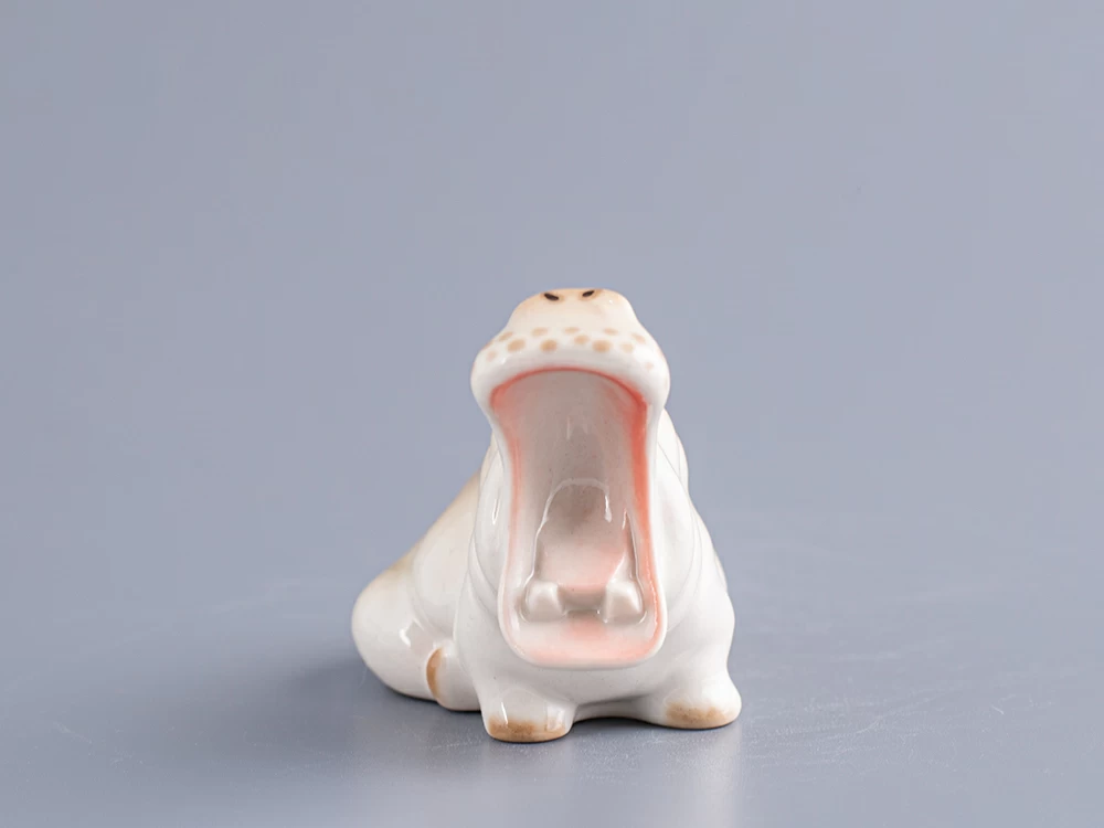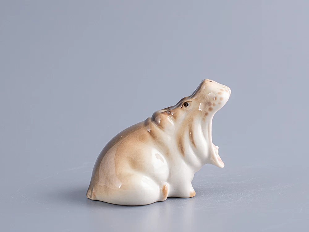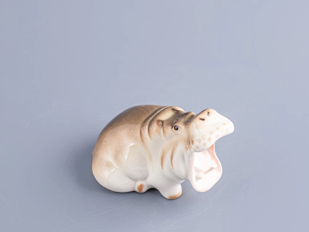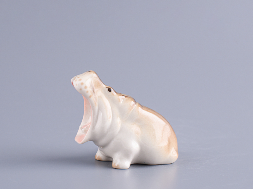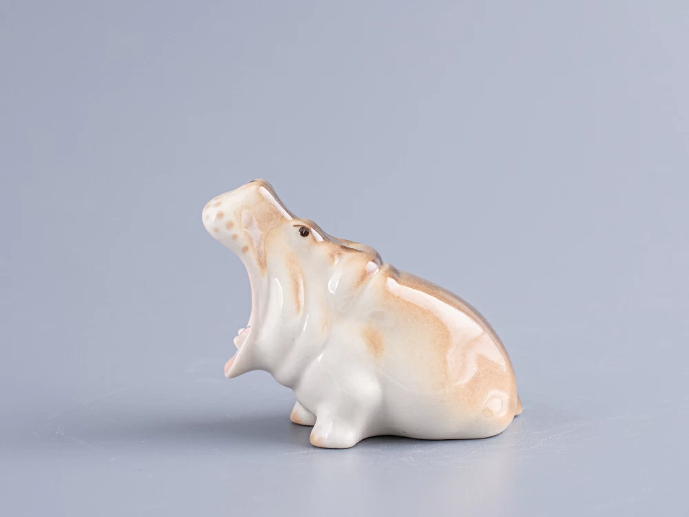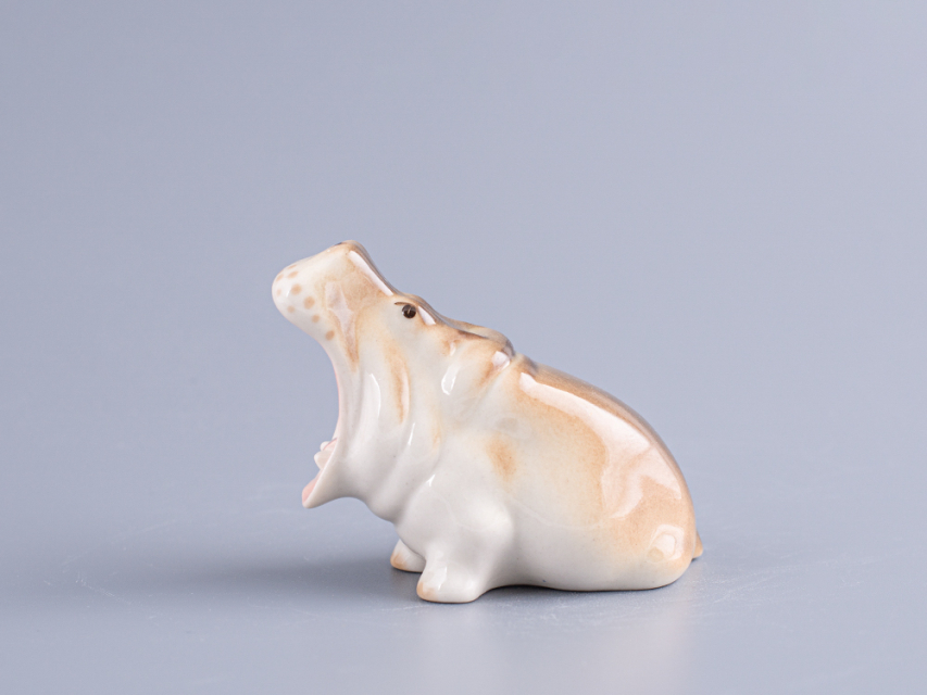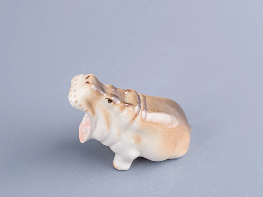 Скульптура Гиппопотам изготовлена на Императорском фарфоровом заводе из мягкого фарфора в технике ручной подглазурной росписи. Высота скульптуры - 59 мм. Скульптура "Гиппопотам" создана в 1949 году заслуженным художником РСФСР Воробьевым Борисом Яковлевичем.